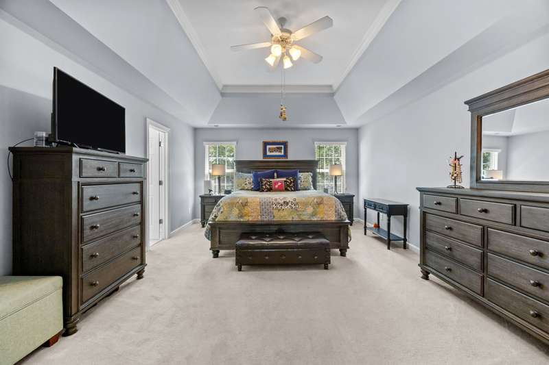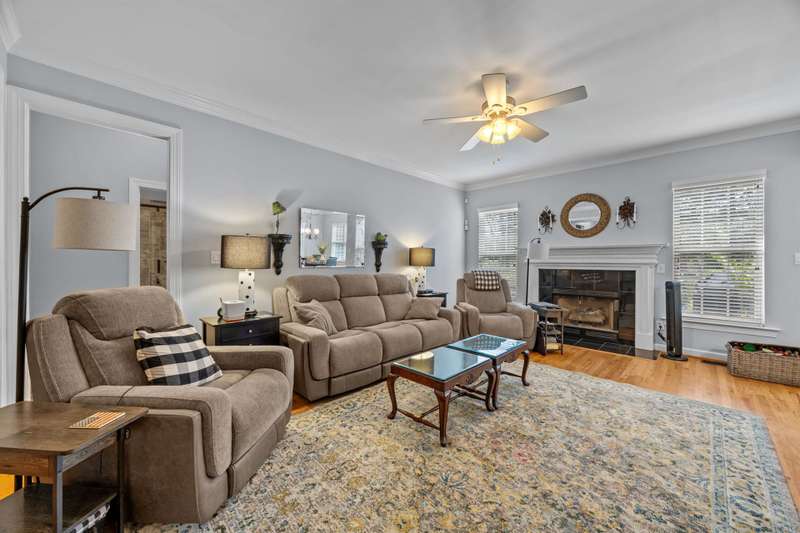 Discover space, comfort, and flexibility perfect for multigenerational living! Sunlight pours in through abundant windows, filling every room with warmth. A main-level bedroom/flex room with full bath offers ideal space for guests, extended stay, or remote work. Enjoy all the formals?living, dining, and family rooms?designed for gathering, relaxing, and making memories. Upstairs features 4 spacious bedrooms and a large bonus room ?ideal for game nights, media, or quiet retreat. The layout is designed to grow with your needs and offers room to truly spread out. Oversized driveway, generous storage -inside the home and garage, and a basketball goal add practical charm. This is more than a house. This is a home built for connection, comfort, and space to thrive. A must-see for those looking for space and versatility. Discover a backyard retreat that blends convenience with tranquility; from the spacious deck, you'll enjoy glowing sunsets framed by mature trees that provide both shade and privacy. The natural buffer of landscaping and tree coverage creates a peaceful setting, softening the sounds and views of nearby roadways while enhancing the sense of seclusion. The fenced backyard has been thoughtfully updated with new landscaping and recently planted evergreen trees that will mature beautifully, adding even more serenity over time. Wildlife, birdsong, and the gentle sway of the trees complete the picture of a private oasis. Whether relaxing in the evening or entertaining outdoors, this space offers a rare balance?easy access to the city paired with the comfort of your own natural sanctuary.