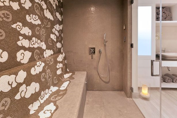 - Enjoy the majestic 25-meter infinity-edge swimming pool with a unique shallow 'beach' area, complete with sunken lounge chairs for supreme relaxation.
