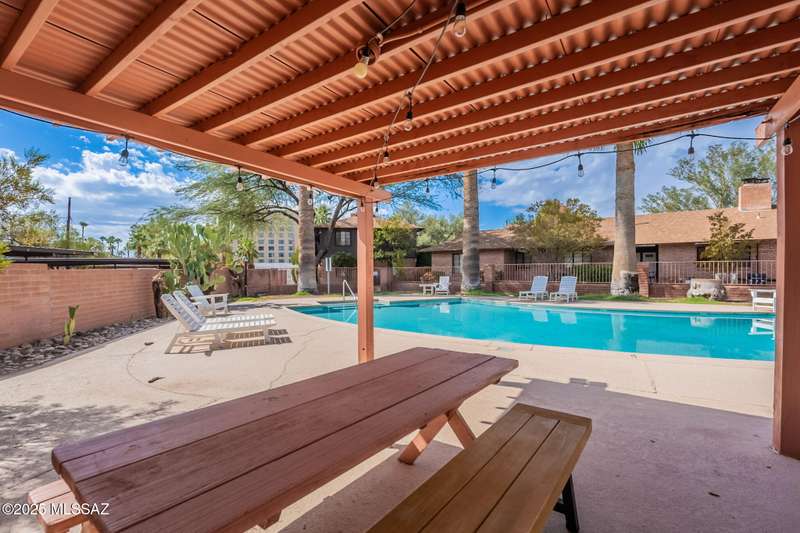 Historic elegance meets modern convenience in this inviting condo in the sought-after Randolph House community. Step inside to warm wood floors and beautiful upgrades throughout. The stand out kitchen features a newer range, complementing the updated cabinetry and countertops. A washer and dryer have been seamlessly added, while an added closet transforms the space into a two-bedroom home. The bathroom has been revamped with a sleek new vanity, mirror and stylish backsplash, elevating the overall aesthetic. Additional touches include contemporary lighting, newer HVAC and water heater. Fully enclosed perimeter fencing adds extra security. Relax in the sparkling community pool. Randolph House is located just steps from Reid Park, and with an array of nearby dining and shopping options