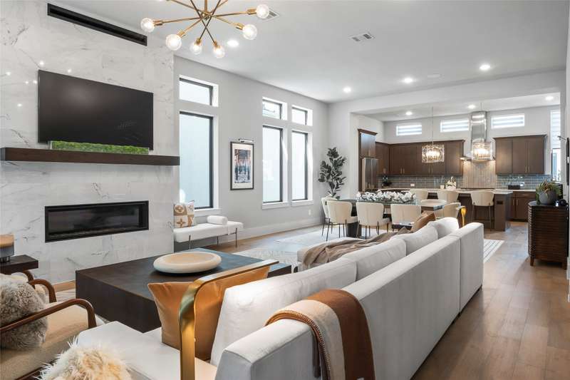 Stunning Luxury Villa in Exclusive Legacy West. Prime location with majestic trees & sweeping greenbelt-park views from multiple rooms. Built-in 2022, this Unfurnished Home features a split 3-bedroom floorplan with an Elevator! Third floor primary suite boasts treeline balcony views plus a private second living area, spa-like bath with dual vanities, lighted mirrors & 2 walk-in closets with full custom closet organizers. Two first floor guest bedrooms or use one as a home office + a mudroom. Covered balcony on the second floor is ideal for entertaining, also faces the beautiful greenbelt. Spacious living room opens to the dining area & kitchen + a wall-mounted fireplace with cut glass doubles as a heat source & a piece of art. Gourmet island kitchen has extensive cabinet space, a commercial gas range, quartz countertops, upgraded stainless appliances. Lease includes the refrigerator, washer-dryer, TV mounts too. Legacy West is a posh urban destination--coveted retail, dining, residential, hotel & office space. Landlords prefer 12+ month term, will consider shorter term at higher rate. Pets on a case-by-case basis. Available Nov. 1st.