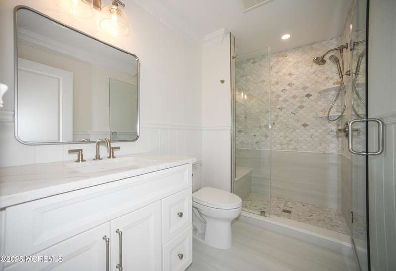 Here's a remarkable opportunity to own an extraordinary residence in the prestigious Bay Head community at the ''Jersey Shore''. Every facet of this 5,000 sq. ft. custom home exudes luxury, meticulously crafted with the finest materials and impeccable attention to detail. Designed with an open floor plan, it seamlessly blends timeless coastal elegance with modern high-end amenities, offering a lifestyle of comfort, sophistication, and style. Featuring an exquisite exterior with white cedar siding, Victorian & Copper roofs (Lifespan of over 40 years), Copper gutters and Anderson windows/doors. The sophisticated interior features engineered hardwood 7''plank oak floors, custom trayed ceiling beams, decorative shiplap, extensive interior trim package & Honeywell smart thermostats. The Chef's kitchen showcases beautifully crafted custom inset cabinets with soft-close doors & drawers, a large quartz center island w seating for 6, Wolf appliances including an 8 burner stove w twin, dual fuel (electric & Gas) ovens, french door 48' Sub Zero refrigerator, 2 additional wall ovens and a butler's pantry. This culinary haven is as functional as it is exquisite. The Living room complete with an oversized gas fireplace, custom trey ceiling and a wet bar with granite counter is equipped with an ice maker and wine fridge is perfect for family gatherings. The main level hosts a dream laundry room, adorned with radiant heat floors, granite countertops and state-of-the-art washer & dryer, making laundry a luxurious affair. Convenience meets luxury with an elevator providing effortless access to three levels of the home. The primary suite has a gas FP, 3 walk-in closets, 12x15' private deck and luxurious bathroom that features a porcelain radiant heated floor, free-standing 6' soaking tub, steam shower and private toilet. Three additional bedrooms come with a decorative shiplap, custom closets & private en-suite full bathrooms with radiant heated floors. Third floor secondary master suite has endless possibilities w a granite counter wet bar, microwave & wine cooler, full bath w skylight & all in one GE Profile smart Washer/Dryer. Venture outdoors to discover a captivating oasis, where a 16x32 Gunite saltwater heated pool w Pentair System beckons with two fire bowl waterfalls and LED lighting, all surrounded by a covered patio perfect for alfresco entertaining and relaxation. The 10x18 poolside cabana features a granite bar, gas grill, cabinetry, ice maker, and beverage cooler, complemented by a four-hole mini pitch & putt golf courseperfect for seamless outdoor living and entertaining. Short walk to the Marina, Bay Head Yacht Club, & beach access ~close to everything this charming coastal town has to offer! This extraordinary home is a testament to superior craftsmanship and timeless design, offering a lifestyle of luxury and sophistication.