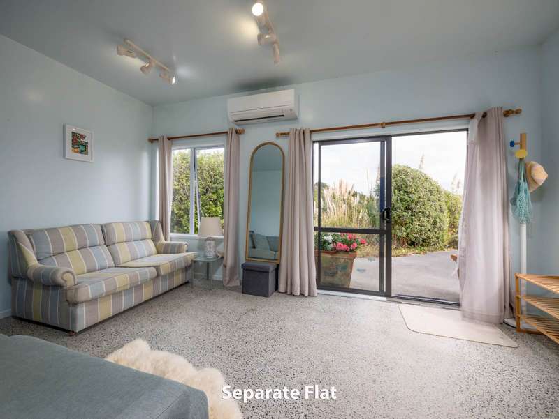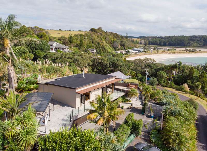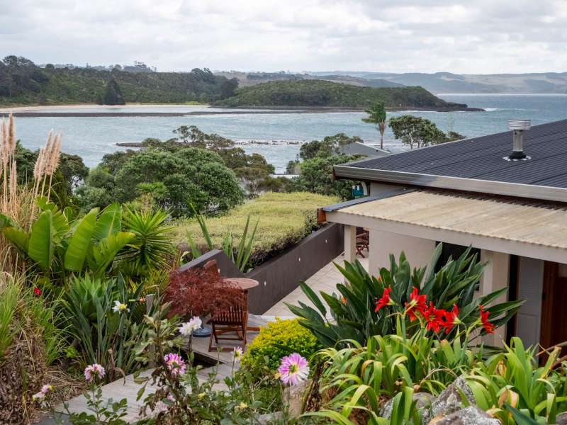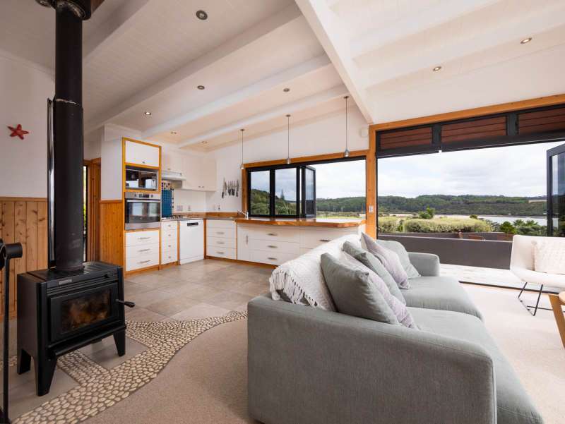 Here it is - your opportunity to secure a unique property within the exclusive, gated community at Tapuaetahi Beach. With expansive, elevated views, there is nothing currently on the market quite like this - a modern home in a sub-tropical setting with Airbnb options and a panorama to die for. Entering at ground level, you will find a double bedroom, bathroom, and a sunny lounge with a private, sheltered patio - perfect for guests, teenagers, or extended family. Heading upstairs via the staircase or externally through the contemporary plantings, living areas, and the outdoors blend seamlessly with sliding doors and concertinaed windows. Multi-level outdoor spaces offer various options for morning coffee, afternoon aperitifs, and alfresco dining, with sweeping views across the beach and lagoon to the Cavalli's and Kauri Cliffs beyond. Walk along the deck to a covered outdoor space with plenty of room for relaxing and lounging (if you ever want a break from the views). Two double bedrooms, an entertainer’s kitchen, and a bathroom complete the internal floorplan here, with a log burner and ducted heating providing warmth and comfort in the cooler months. Heading back outside and up behind the main residence, a separate self-contained sleepout provides more accommodation options, and to the rear is a double garage and carport for the boat, and a lovely grassed area with fruit and vegetable gardens already in place. With the best combination of picture-postcard views and elevated privacy, this leasehold property is the perfect place for families, professional couples, retired folk, those wanting home and income - or as a lock up and leave holiday home. This is a rare opportunity to secure the dream lifestyle within a friendly community - and enjoy sunset Pacific Ocean views, paddle boarding, surfing, boating, and sandy beach walks. With the ease and convenience of a short 20-minute drive from central Kerikeri, this is beach living at its best. Call now to make a time to view.