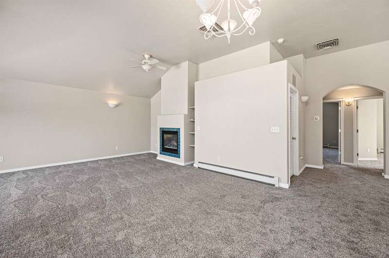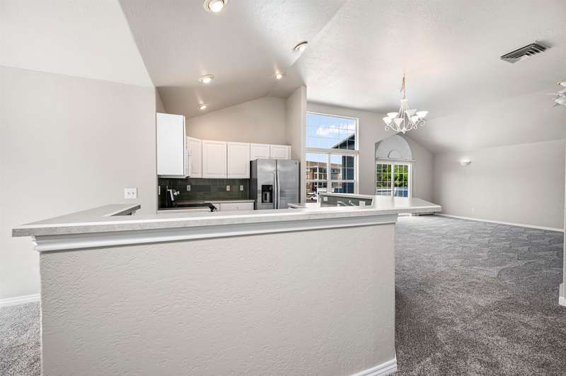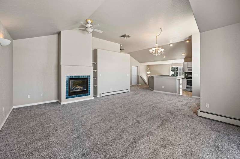 Welcome to this charming upstairs ranch-style condo. This 2/2/2 unit was remodeled in 2025 with new flooring, dishwasher, fresh painting boasts an open and bright layout with a gas log fireplace, small deck and vaulted ceilings. All appliances including washer/dryer are included. Close to shopping, hospital, schools. A MUST SEE!