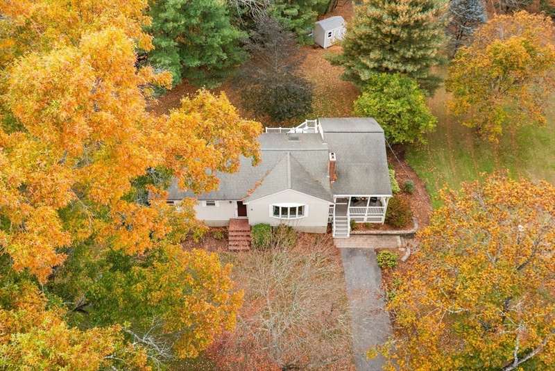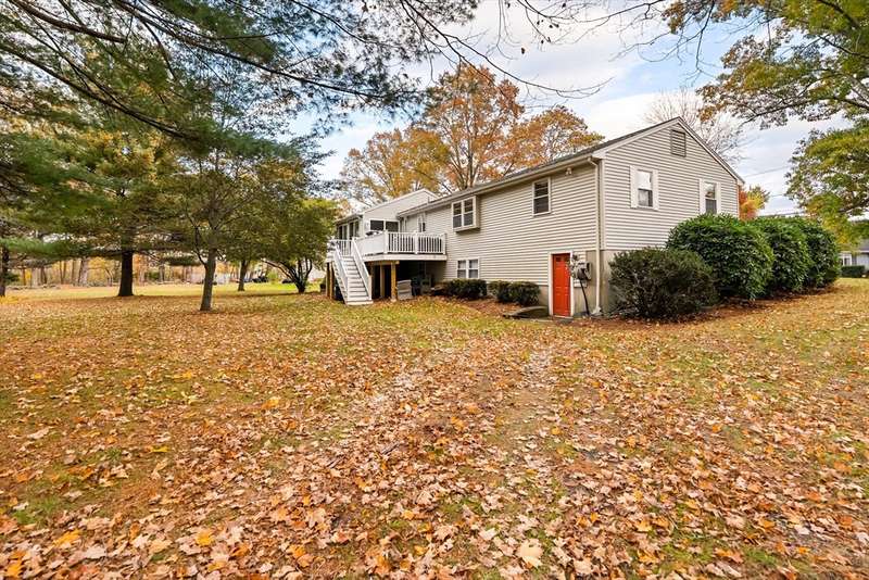 Welcome to West Bridgewater! This adorable 3 bedroom ranch home has tons of curb appeal and sits proud on a gorgeous country corner lot with mature landscaping. There is room for everyone in this expanded home. Step from your welcoming front porch into the oversized sunroom with vaulted ceilings that is fantastic for entertaining with access to the new composite deck. Move into the well-appointed kitchen with newly added island and featuring stone counters and newer appliances. Enjoy an open concept main floor layout as you move from kitchen into the living room anchored by a charming fireplace with built-ins and into the dining space beyond. The first floor offers 3 generous bedrooms and an updated bath. The basement features additional remodeled living space with extra storage and laundry space. Updates include central air and newer septic. This home has it all! Do not miss you chance for quiet comfortable living just minutes from shopping, schools, and highway access.