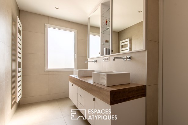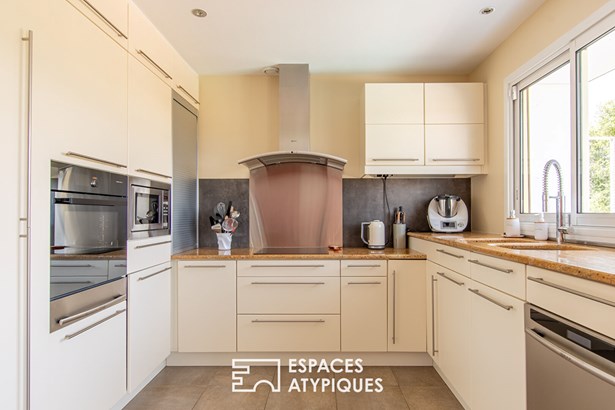 It is distinguished by a quality renovation with an original extension carried out by an architect. It offers all the necessary comfort and modernism inside, in a sober and elegant style.