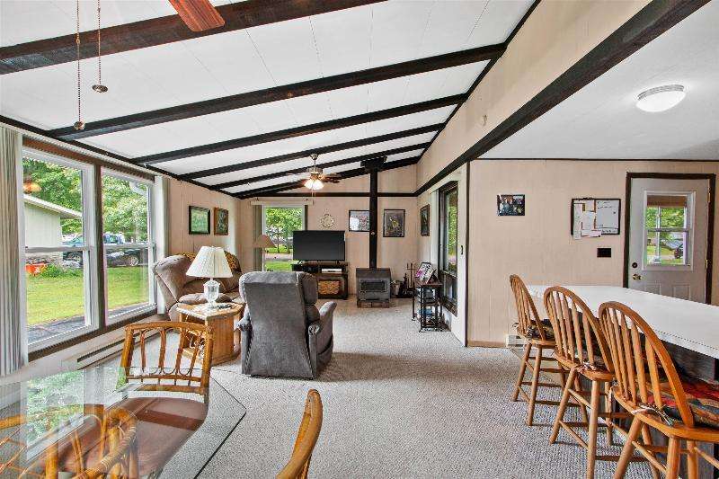 Lake Sherwood 3 Bed/1.5 Bath home sits just a few lots from the desirable "Squire" neighborhood beach club, giving you easy access to beautiful Lake Sherwood! Step inside & enjoy the spacious 10x28 Sun Porch--perfect for relaxing with morning coffee or watching wildlife. The inviting Great Room features a cozy wood stove for those chilly Wisconsin days. Exterior highlights include a 2022 roof, maintenance-free vinyl siding & windows, a blacktop horseshoe driveway, and a 26x28 garage ideal for storing vehicles, boats & recreational toys. Located in the Town of Rome, you'll have direct access to hiking, biking, and UTV/ATV trails, plus close proximity to Lake Arrowhead and world-class golf at Sand Valley. Enjoy boating, swimming, and fishing in the full recreational waters of Lake Sherwood!