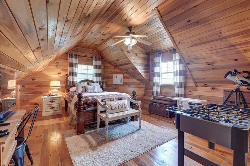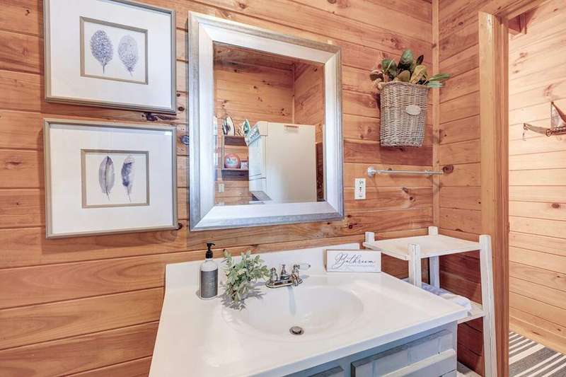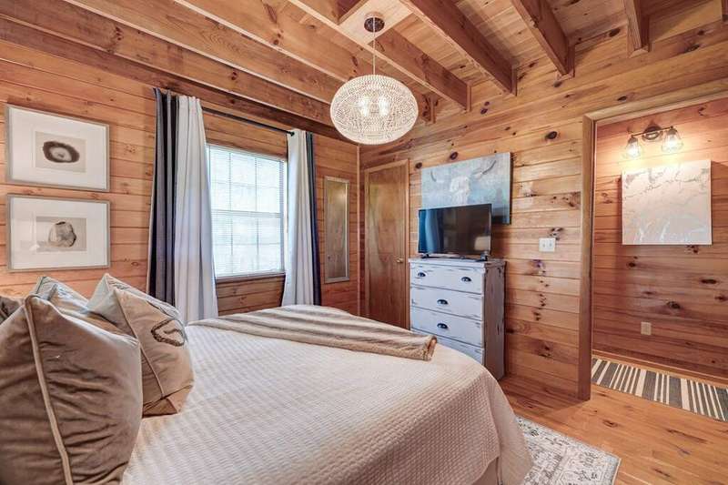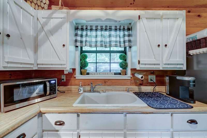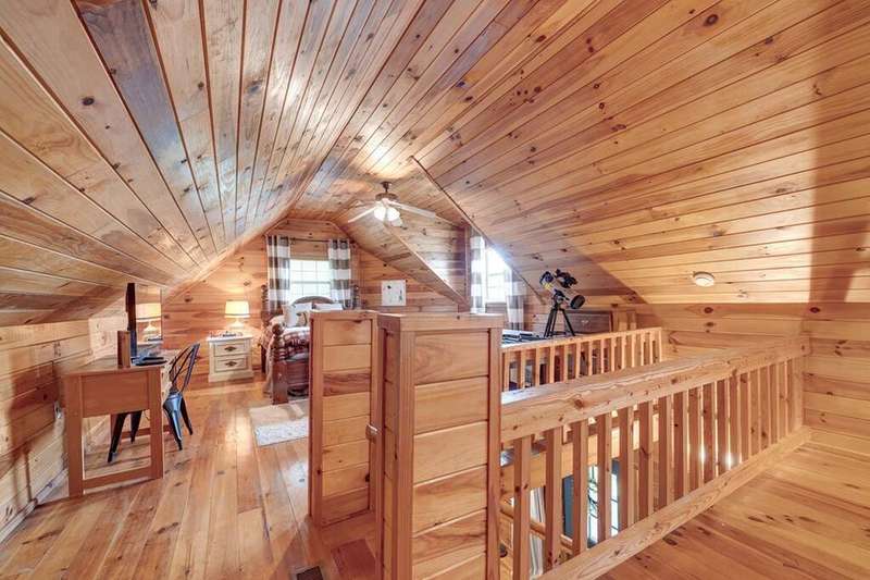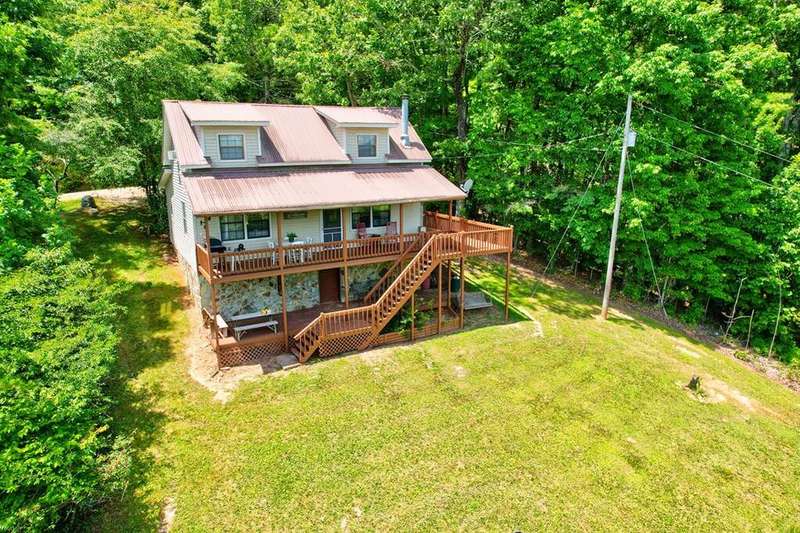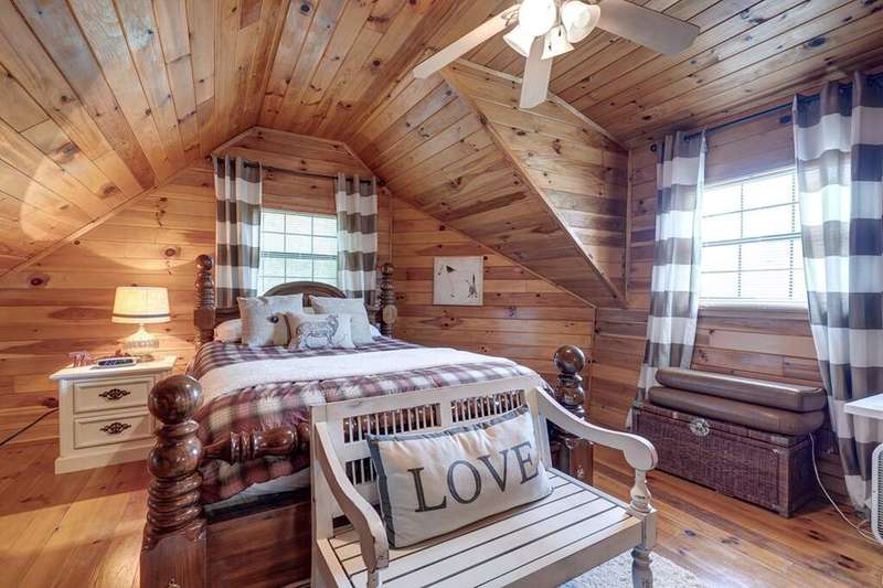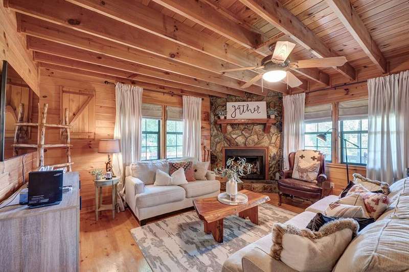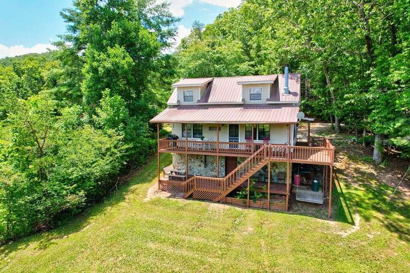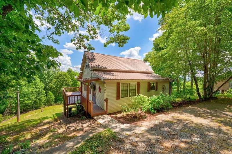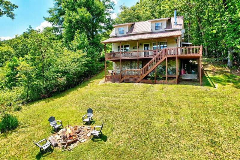 Are you looking for a charming Mountain View Cabin sold turnkey? This could be your perfect getaway or short-term rental close to Blue Ridge and McCaysville! Step inside to find a beautifully furnished interior featuring a cozy dining area for six and a country kitchen. The spacious living area boasts a rustic river rock fireplace, perfect for relaxing evenings. On the main level, you'll find a tranquil bedroom, a full bathroom, and convenient laundry facilities. Upstairs, the flexible space includes one queen and one double bed, set up as 2 bedrooms with a stylish half bath and built-in storage. The gentle laying yard provides space for gardening and a place for your pets. Relax on the back porch and take in the mountain views that inspire peace and tranquility.