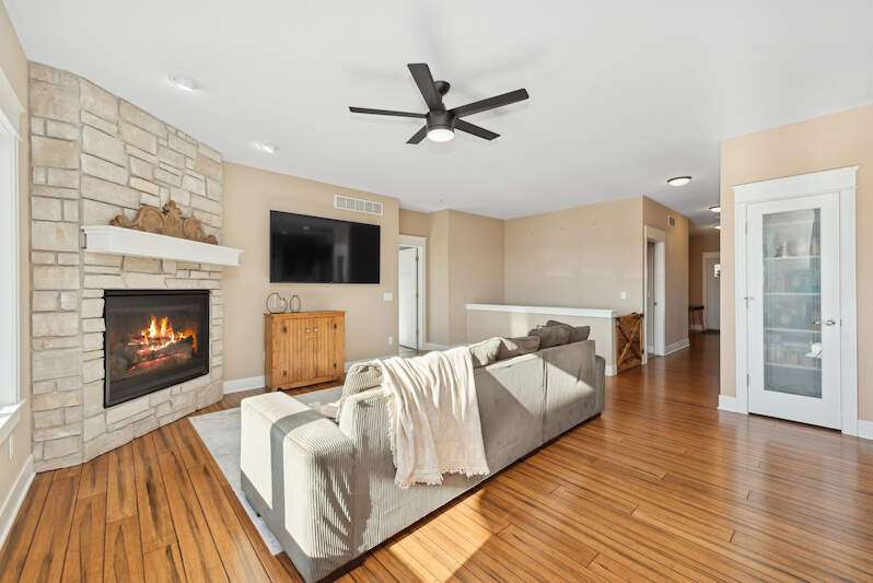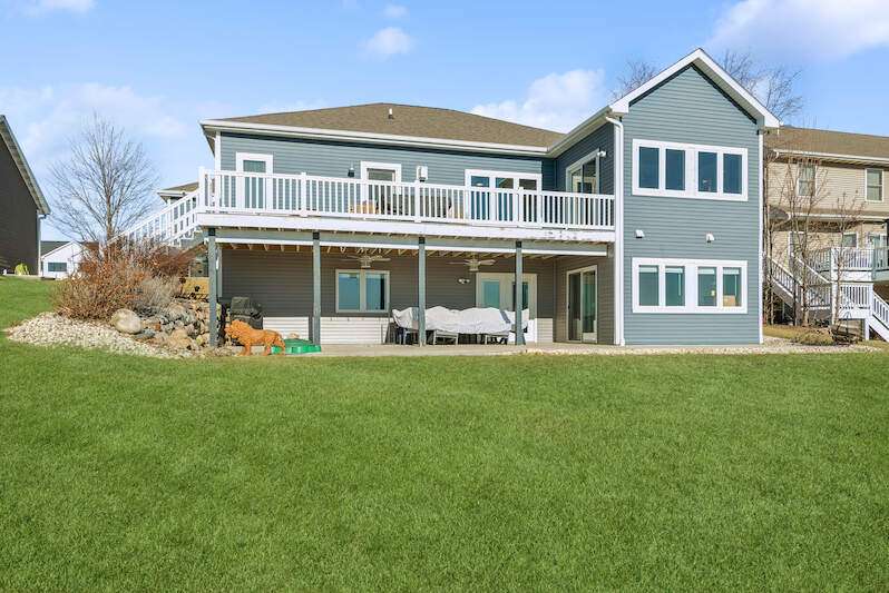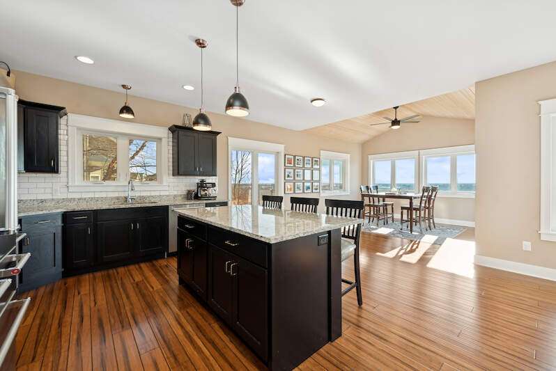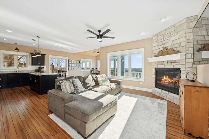 Welcome home to 480 Boulder Ridge Dr. in the sought after Stone Ridge neighborhood built by Geneva Lake Dream Homes. Overlook the city of Lake Geneva with clear views of Geneva Bay in this elegantly finished 4-bedroom home. From the stranded bamboo flooring to the gas fireplace, you will fall in love with all this home has to offer. Main floor features kitchen with breakfast bar, primary en-suite with marble walk-in shower, and laundry room. Lower level was finished in 2022 by Buskirk Construction and features wet bar with Scotsman ice maker, beautifully done all Kohler bathroom with soaking tub and huge shower, bedroom, and a walk out to your 600 sq ft patio. Park your cars or store your toys in the 3-car attached garage. Close to US 12 for an easy commute!