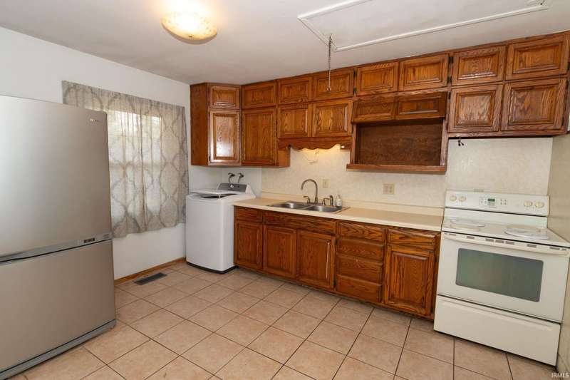 Privacy fence, storage shed, and designated garden areas in the rear yard. Central location-All appliances remain. Newer furnace. Oak kitchen includes washer and dryer area. Walk-in shower.