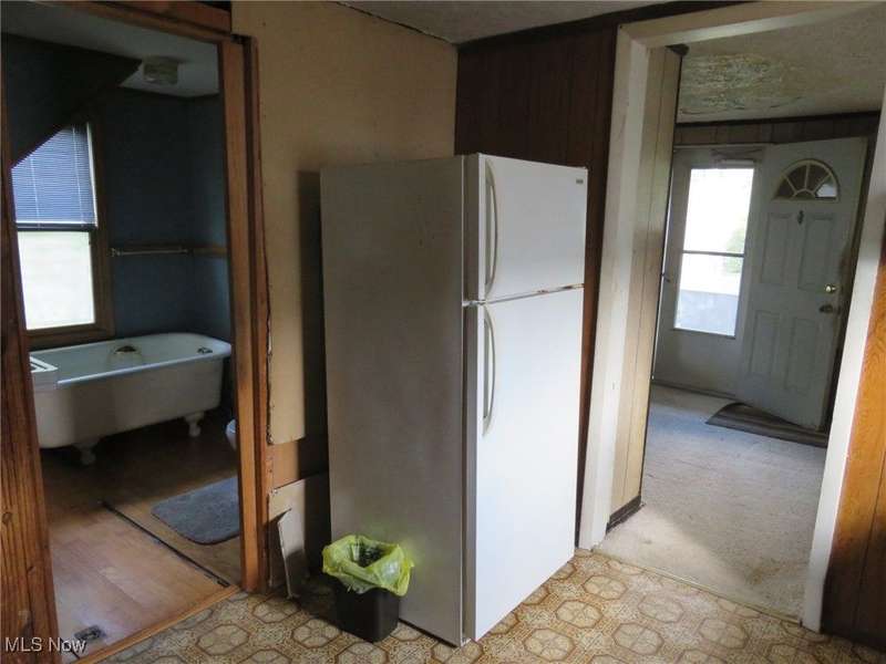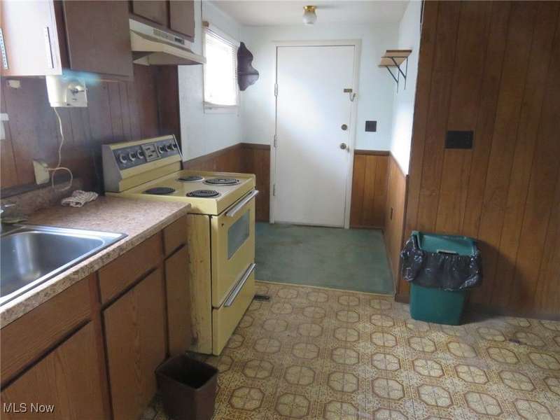 Cheaper than rent! Cute two-bedroom home with front porch and a one-car detached garage. Quiet street yet close to everything. Features include: first floor bathroom. two bedrooms up, full basement, electrical system and heating systems have been updated. Kitchen with stove and refrigerator stay with home. Washer and dryer will remain as well. No warranties implied. Home is vinyl sided and has a private back yard. Two entrances to basement, including an outside entrance. Home does need some TLC. Close to Route 2 and 90, OH Turnpike, shopping, schools and restaurants. Call for an appointment.