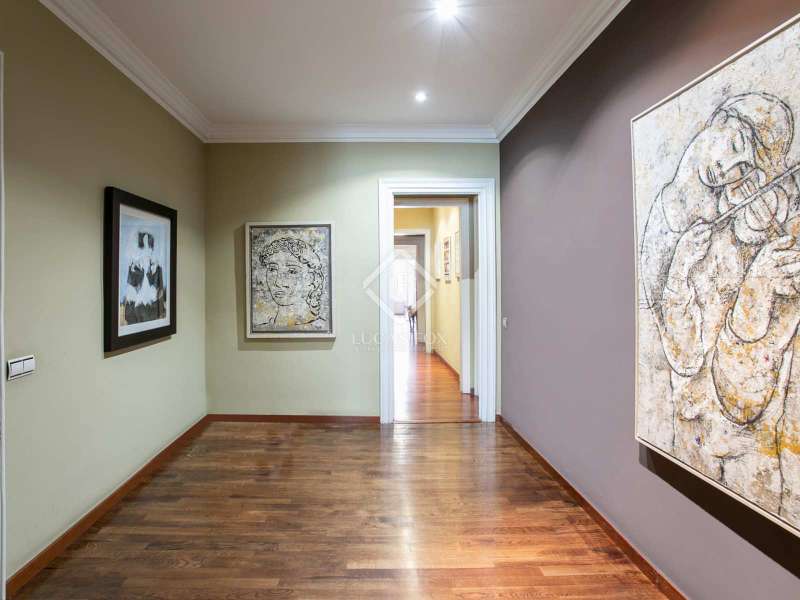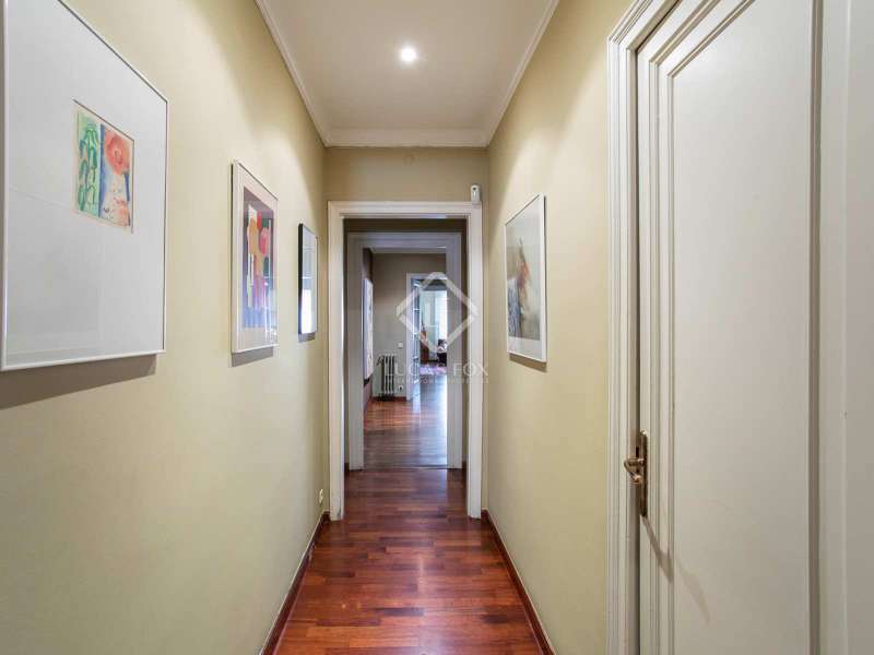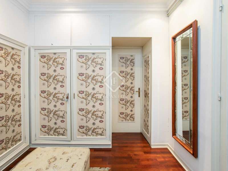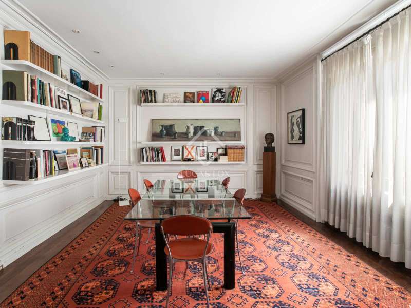 This apartment has two entrances, the main one and the service one. In addition, it is perfectly divided into two areas: the living area and the night area. Upon entering the front door, we find a spectacular hall that separates these two areas. To the right, we find a huge living area in two rooms and further on the dining room. Both the living room and the dining room benefit from abundant light from their windows, high ceilings and clear views. Continuing through the dining room, we arrive at the kitchen, fully equipped and with appliances by good brands. This area connects directly with the service area consisting of a bedroom with bathroom, pantry and gallery. This area can be accessed directly through the service door. The night area has a corridor that leads to the different rooms. First, an office and then we find the master suite with its own dressing room and bathroom, as well as a small balcony. Further on, there is a double bedroom with a bathroom and another bedroom that is currently used as an office. Finally, there is a bathroom that serves these last two rooms. All bedrooms are spacious and exterior facing, with abundant natural light. In addition, a large parking space for two cars is offered. Please contact us for more information.