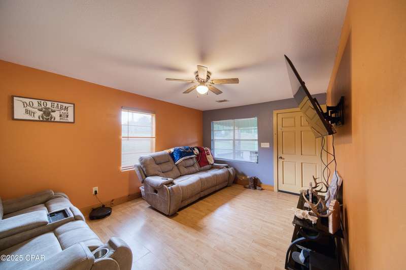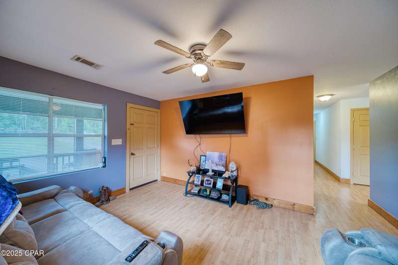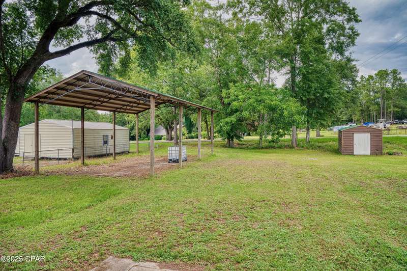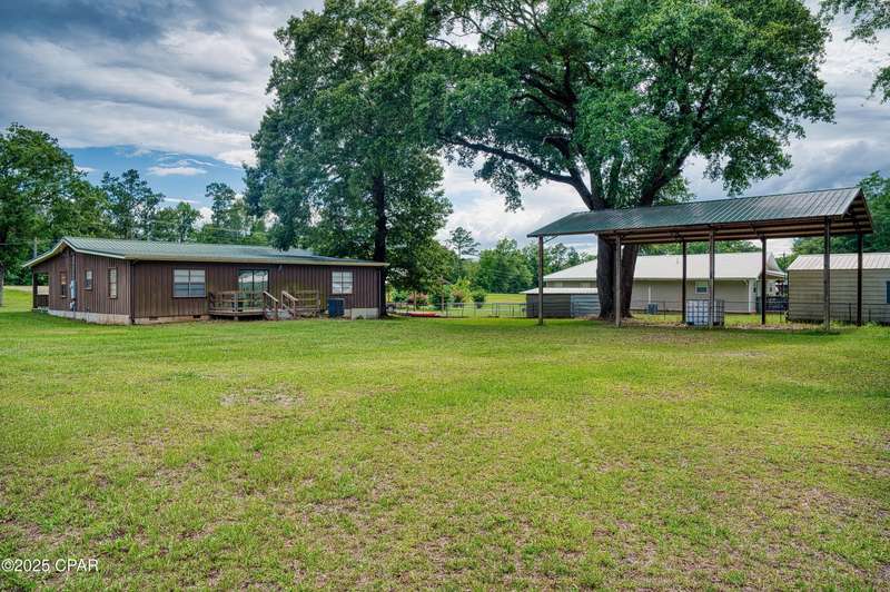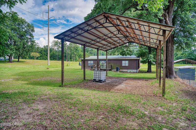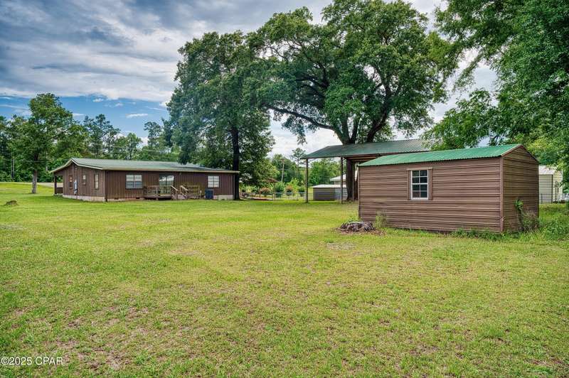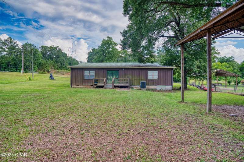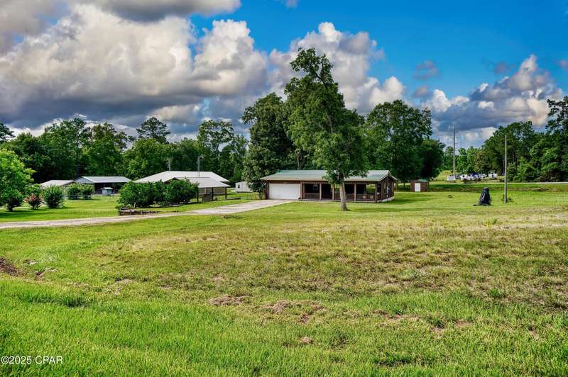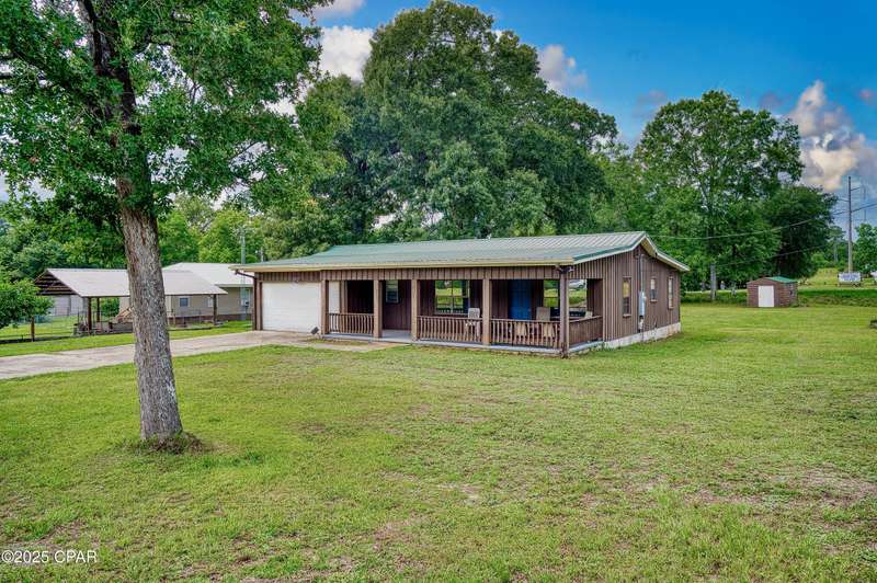 This move in ready gem offers the perfect blend of comfort and convenience with 2 bedrooms, 2 full bathrooms, and a one car garage all set on a spacious half-acre lot in the peaceful countryside of Sneads. Enjoy an open-concept living space along with a cozy separate den, ideal for relaxing or entertaining.Step outside to a beautiful covered front porch perfect for morning coffee or evening sunsets. The backyard is built for enjoyment and functionality, featuring a wooden deck, a sturdy outbuilding for extra storage, and a pole barn--great for projects, parking, or outdoor gatherings.Practical upgrades include a private well, HVAC system, and roof--all less than 7 years old--giving you peace of mind for years to come. The mature oak trees add charm and shade to the property, and the home's Hwy 90 frontage offers easy access while still giving you that quiet, country feel. Whether you're a first-time buyer, downsizing, or just looking for a little land to call your own, this home is ready to welcome you!