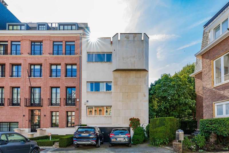 In the very exclusive Square du Bois, a beautiful house with character and a splendid south-facing garden designed by Jacques Wirtz, opening onto the Bois de la Cambre (plot of +/- 6 ares85). Living space of +/- 600 m² currently divided into two units: a duplex garden level of 400 m² and a duplex penthouse of 200 m² enjoying a beautiful panoramic terrace. Service flat (2 bedrooms, bathroom). Lift. Garage for 2 cars. PEB D