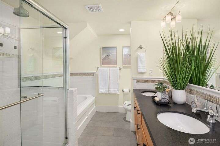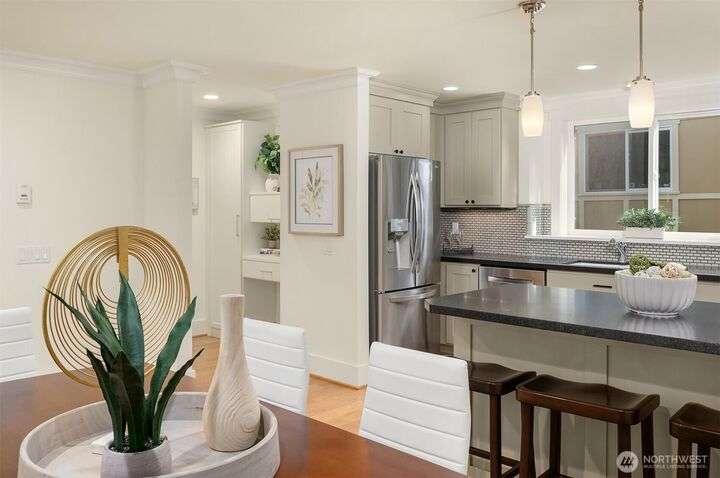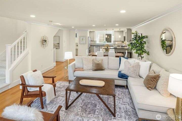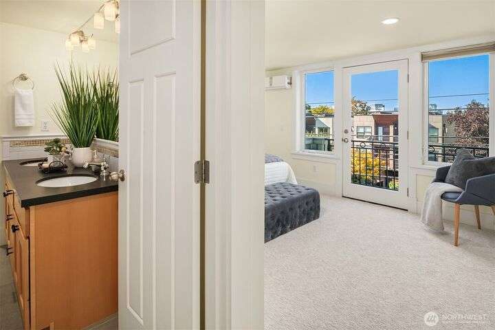 You found it! Timeless design & built with notable quality all in the heart of vibrant Capitol Hill. Imagine all the conveniences right at your doorstep. Enjoy a light-filled 3 bedroom + loft home. The kitchen is sure to please any chef w/newer stainless-steel appliances & a seamless flow into the dining area & great room w/west facing windows & a corner fp for the cooler days. Upstairs, you’ll find spacious bedrooms and laundry area. A primary suite & bath w/French door to a private west facing balcony for the Olympic Mountain views! Upstairs, a flex/loft holds endless possibilities & has iconic Space Needle views. With a walk score of 97 you may not need your RARE 2 car garage! Radiant floor heat & A/C ensure year-round comfort. No HOA!