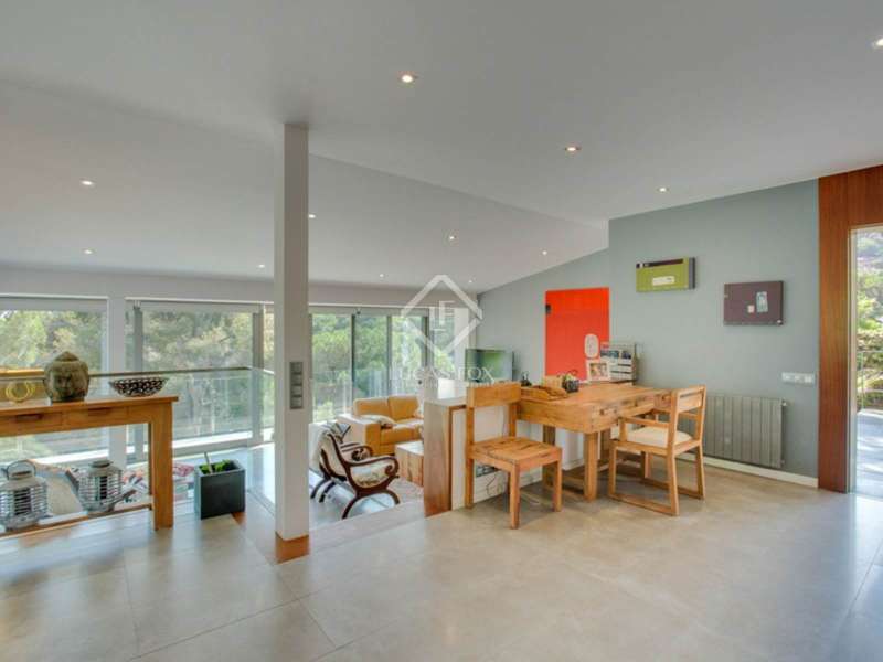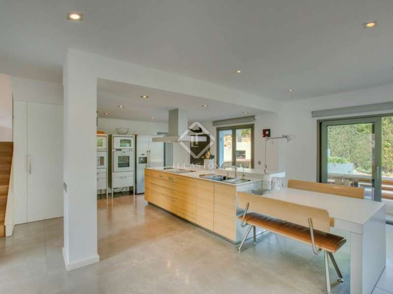 This Costa Brava house to buy is ideally located; just a 400m walk to the desirable Cala Sant Francesc beach. This house is to be found in excellent condition; the property is intended for all year round living, providing good home comforts. Perched in a high position, the house boasts lovely views over the cove of Sant Francesc, its proximity to the beach gives it added allure. On the main entrance level is a wonderful open kitchen leading to the terraced barbeque and outdoor dining area. Off the kitchen is a pantry and boiler room (with excellent De Dietrich boiler, diesel). The open plan kitchen leads down to the spacious lounge area and guest cloakroom. On the 1st floor there is a shower room and 2 bedrooms; the 2cnd floor offers bedroom 3 and bedroom 4 which is en suite with a private terrace; on the 3rd floor are bedrooms 5 and 6, both with fitted wardrobes plus a shower room and on the 4th floor is bedroom 7 with access to the roof terrace. On the lower ground floor is a large games room/summer lounge area looking out over the decking with lovely sea views, there is a bathroom and storage area on this level too. On the street level is a large and spacious garage with a huge storage area and the lift with access to the main level. The garden offers terraces with views and dining areas.