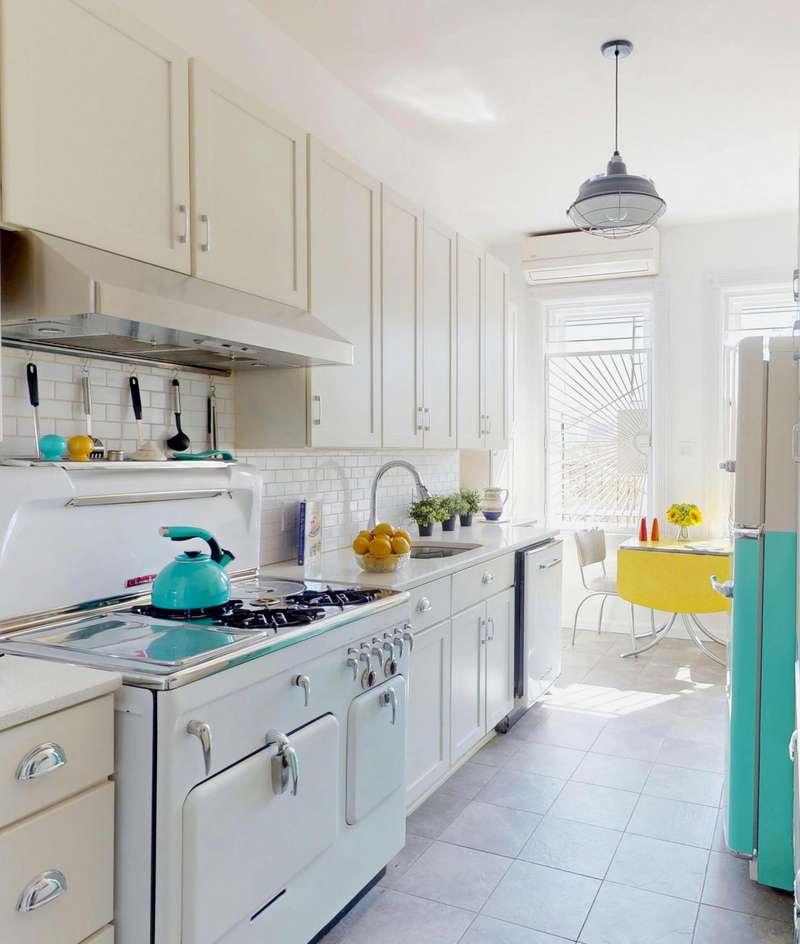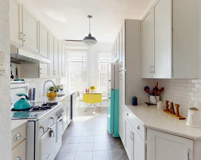 The sunny, windowed eat-in-kitchen with separate laundry room and pantry, has been beautifully renovated. The centerpiece of this room is a gorgeous fully refurbished vintage Chambers stove from the mid 1950's. Not only is it beautiful to look at, but the results of cooking with this stove are superb. Every detail in the kitchen was thought out with care, down to the Big Chill fridge and dishwasher (new appliances that look midcentury!) Any chef will enjoy working in this kitchen with tons of cabinetry and stunning quartz counters---room for everything!