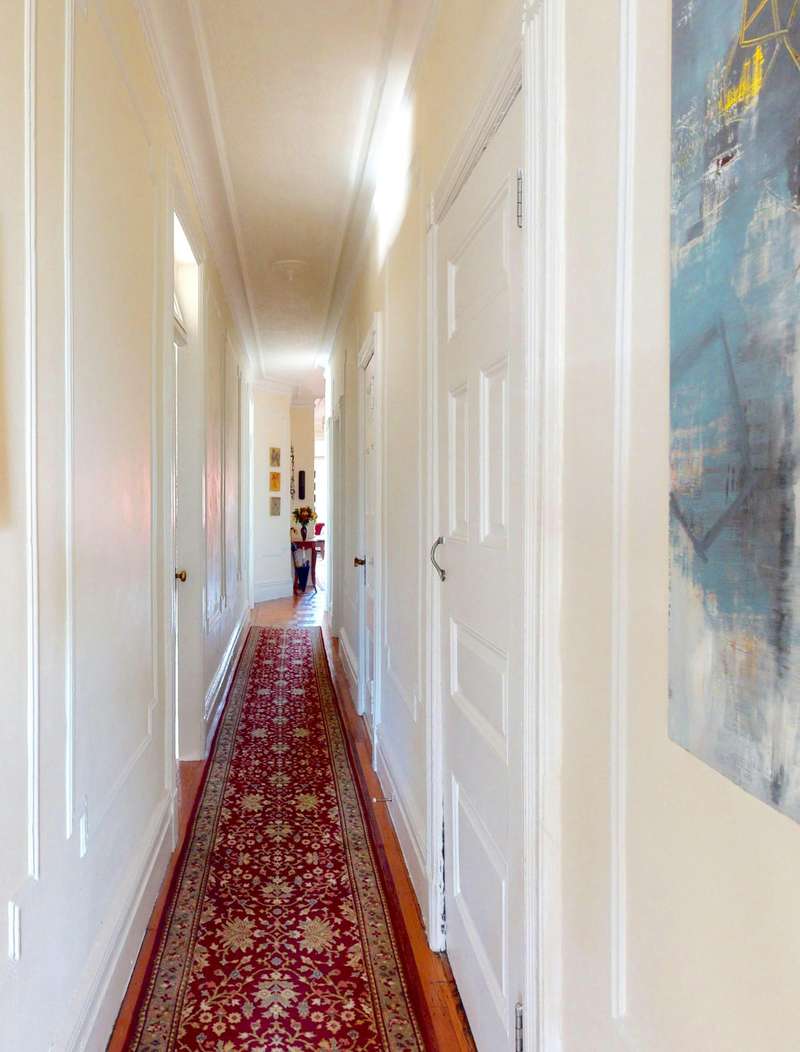 Down the long hallway (a perfect backdrop to display your artwork), you will find two bedrooms facing West (one currently an office), a walk-in cedar closet, the primary bathroom, a powder room, and a second walk-in closet that has been converted into a recording studio.