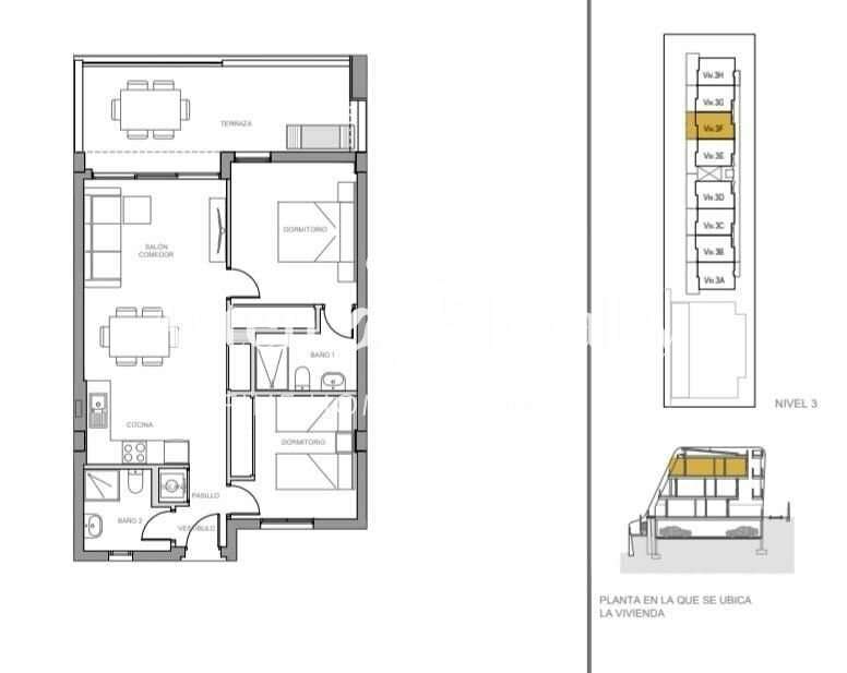 This beautiful 2 bedroom 2 bathroom apartment located on the third floor has a terrace with a spectacular view over the golf course.
