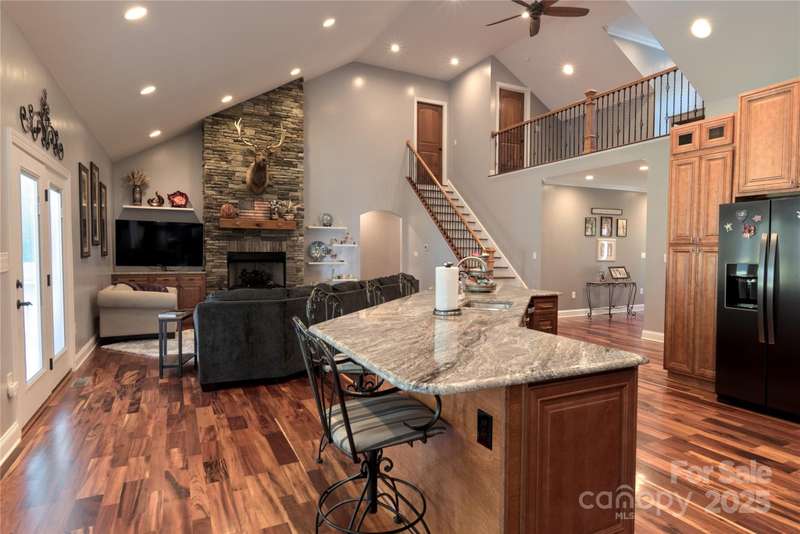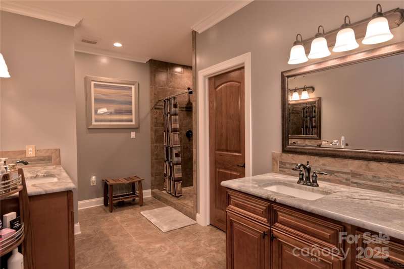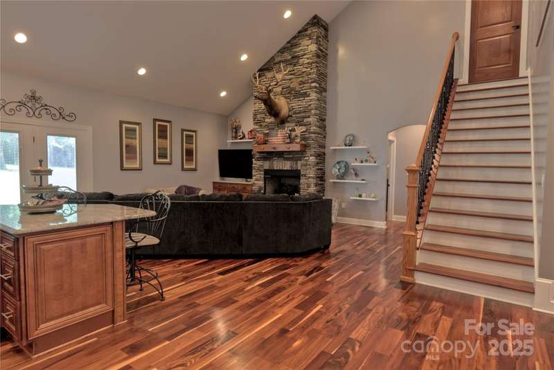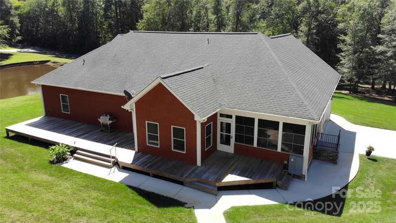 Over 4 1/2 acres and no HOA! A rare gem in Huntersville. Country living at its best. Custom build with high end finishes including gorgeous granite in kitchen and all bathrooms. Brazilian hardwood flooring throughout the main level. Kitchen has large island and custom cabinets with an open floor plan including dining area, living room, stone fireplace with gas logs, built in shelving and high ceilings. Large screened porch beside kitchen for entertaining. Upstairs is a loft area for an office or playroom with storage on either side. One side is already plumbed for a bathroom. Outside is beautiful and private a large deck looking over the wooded backyard with fully stocked pond. Irrigation system, gated entrance. This property also boasts a detached 5 car garage AND a massive steel outbuilding with over 3000 sq ft. perfect for collectible autos, auto shop, workshop or tons of storage. 2nd Living Quarters attached including 2 bedrooms, full kitchen and a full bath for all of your guests and family. Parking for boats, RV's, ATV's. Come see this one of a kind custom home and property waiting for your Buyers!