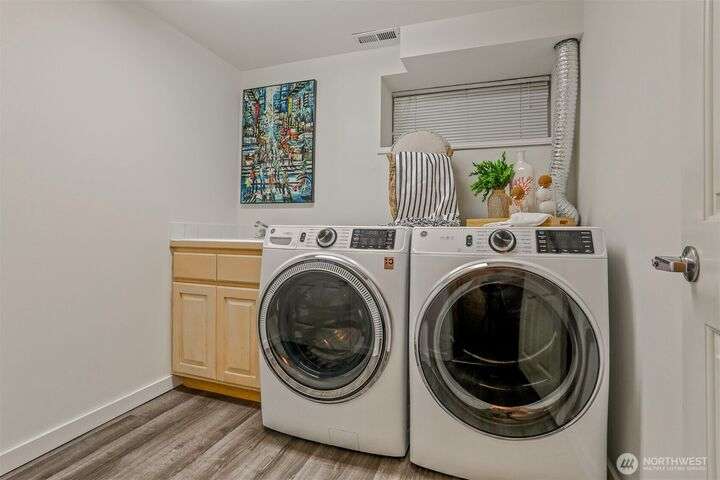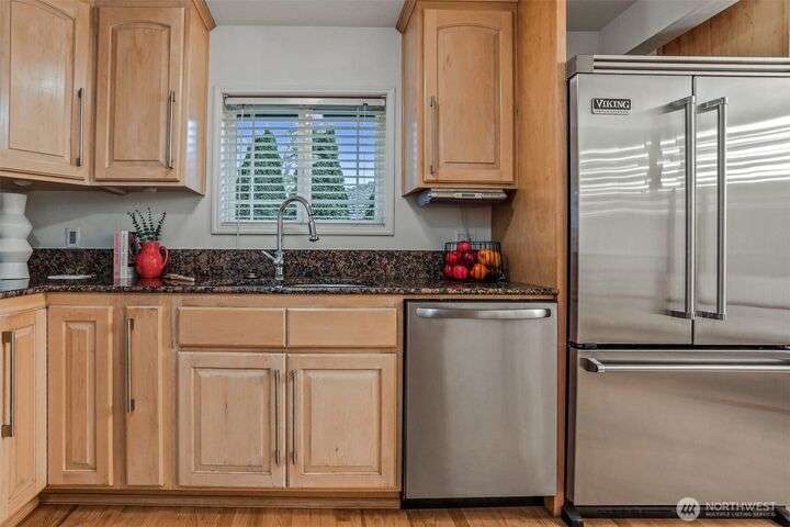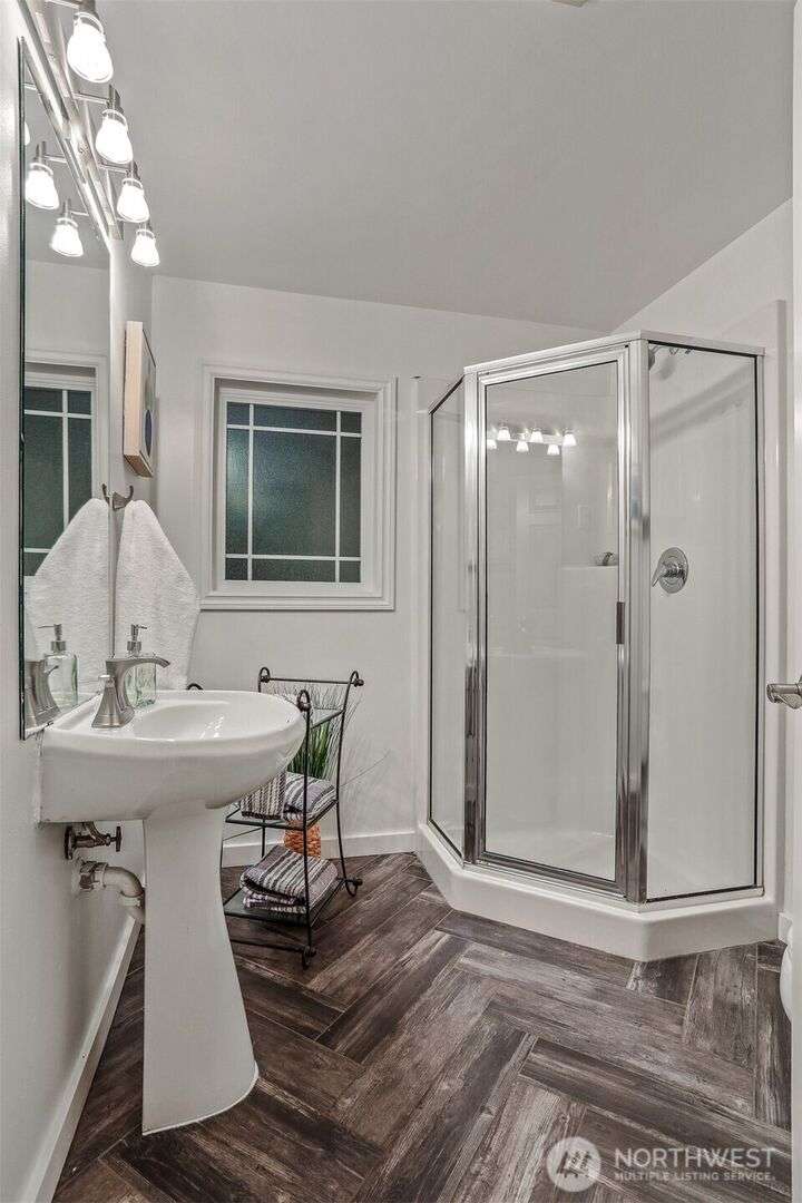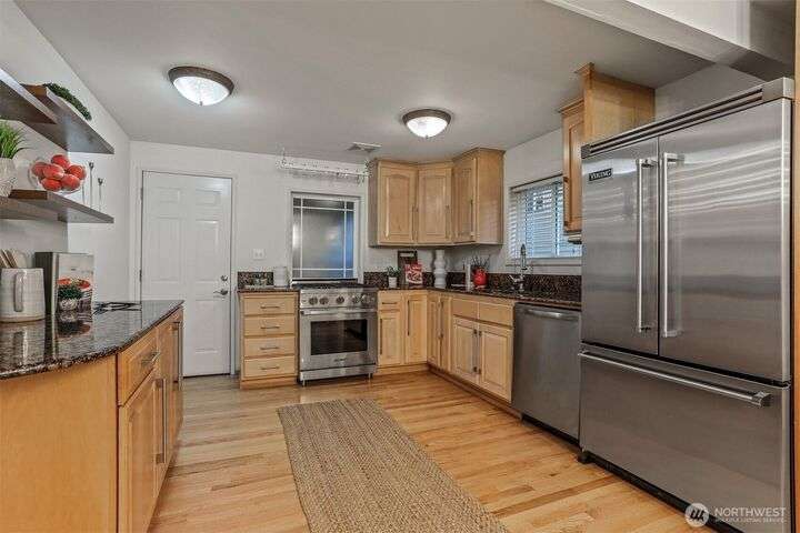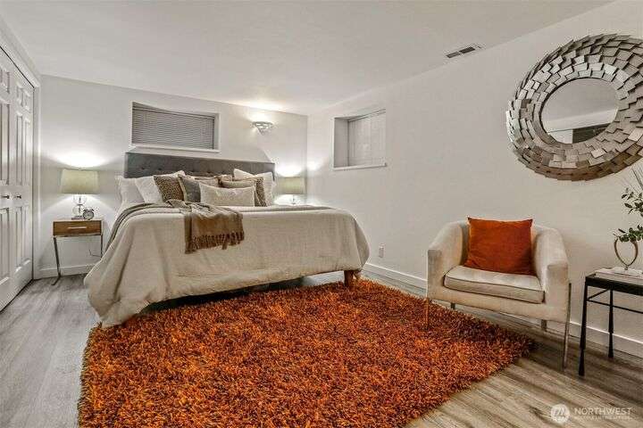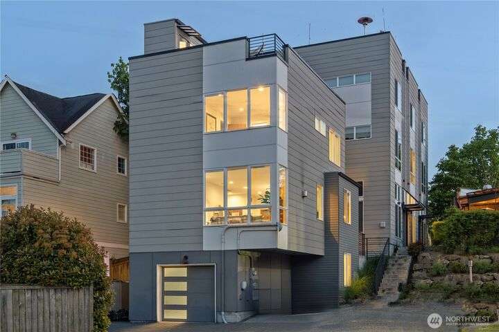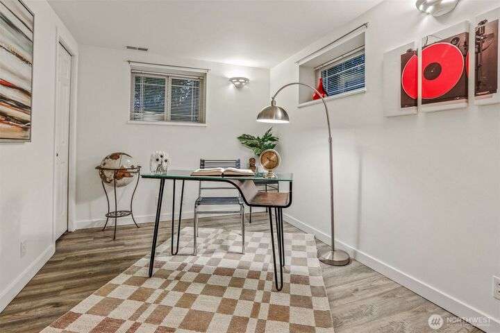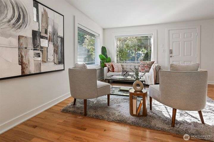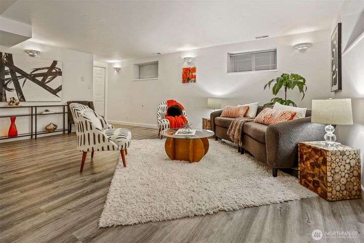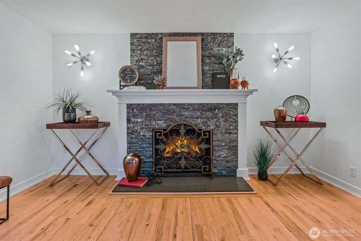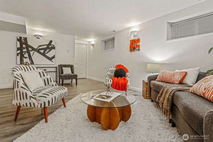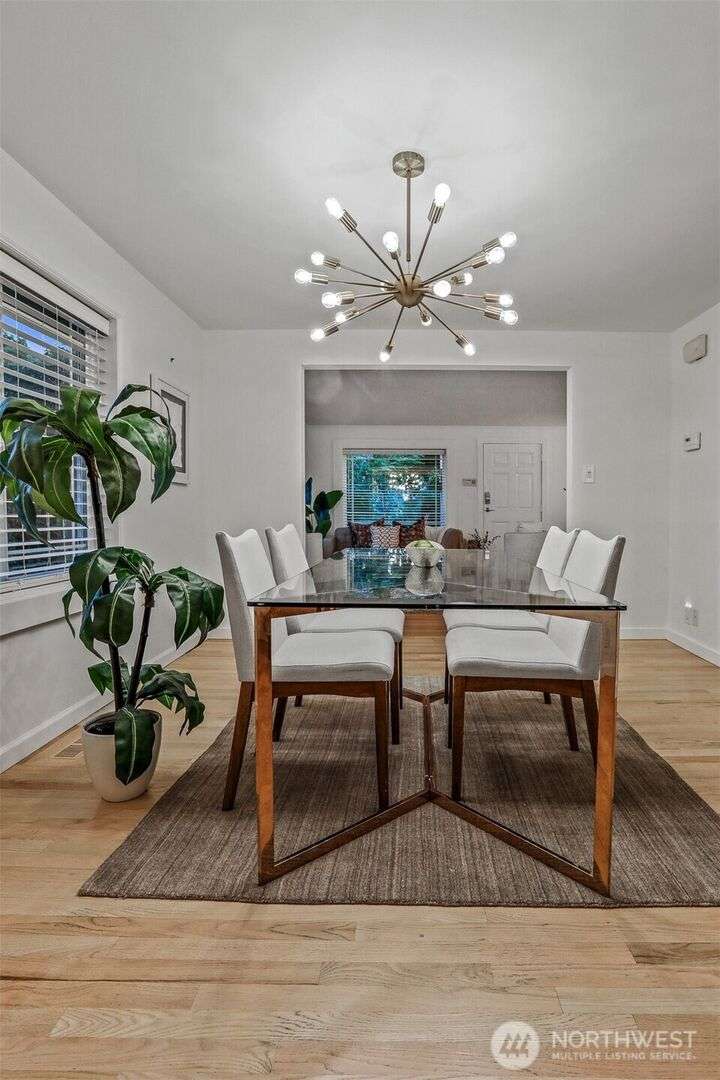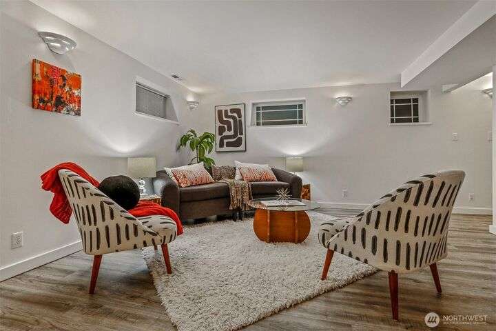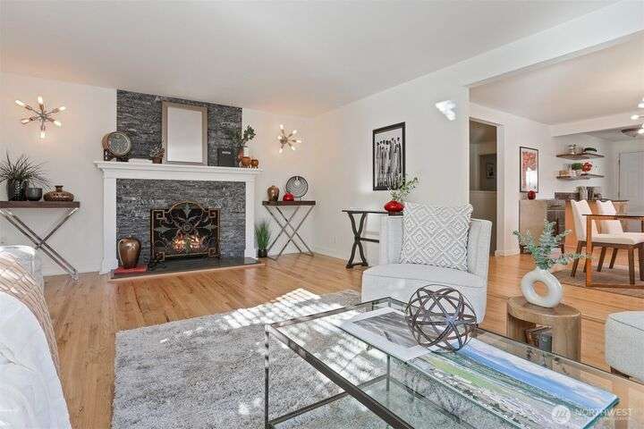 This beautifully updated 4 bed/3bath turnkey mid-century home is a must see! Bright & open main level boasts large picture windows, cozy living room, gas fp, formal dining & chef’s kitchen. Refinished hardwoods complete this inviting main floor! Lower level has a large living/rec room, gas fp, separate kitchen/bar, laundry room & wood plank porcelain flooring throughout. Whether an extension of single-family living, this level also offers a separate entrance, ideal for multi-generational living, MIL/guest quarters or immediate Airbnb rental income! Low outdoor maintenance made for easy living w/private off- street parking for 2 cars. Close to shops, restaurants, and coffee! Easy transportation on bus Downtown or via I5 and 99.