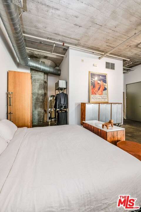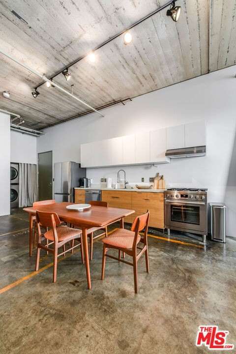 Discover the iconic Toy Factory Lofts, a highly coveted Live/work loft community in the vibrant Arts District of DTLA. This remarkable penthouse loft, a rare find, boasts an expansive open floor plan with impressive 12-foot ceilings, concrete flooring, and striking columns. The loft is illuminated by oversized industrial-style windows recently upgraded with new glass and motorized shades, facing south to invite abundant natural light throughout the space. Recent upgrades include kitchen appliances, including a Bosch gas stove, Samsung refrigerator and dishwasher, and a convenient LG front loading stackable washer-dryer. Building amenities enhance the living experience, offering a secure lobby with a 24-hour doorman, a rooftop pool surrounded by a sun deck that provides breathtaking views and a cozy fire pit, as well as a third-floor communal deck with lush green spaces, barbecue areas, and a two-story gym. Residents will also benefit from an indoor, secured parking space in the attached private garage. Conveniently located just steps away from Hank's Organic Market, Camila, Bestia, Bavel, The Soho House, Factory Kitchen, The Bike Shed Moto Co, and Hauser & Wirth Gallery, this vibrant neighborhood offers an abundance of dining, shopping, and cultural experiences to enjoy.