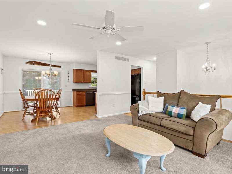 Welcome to the Woorley community of Finksburg! This brick and vinyl split-foyer home offers an open floor plan designed for comfortable living and entertaining. The main level features a spacious living room with plush carpet, a bay window, and recessed lighting, flowing seamlessly into the dining room with luxury vinyl plank floors and chair railing. The kitchen is complete with sleek appliances, quartz counters, and ample cabinetry, with direct access to the deck and fenced backyard for easy indoor-outdoor enjoyment. The primary bedroom boasts plush carpet, custom blinds, and a private en-suite bath with ceramic tile and a glass door walk-in shower. Two additional bedrooms and a hall bath complete the main level. The fully finished lower level offers a cozy retreat with a wood-burning fireplace accented by a reclaimed wood mantle and brick surround. An office or fourth bedroom with luxury vinyl plank floors provides flexibility for work, guests, or hobbies, while the laundry room adds convenience. With a powder room and direct access to the rear yard, this level enhances both everyday living and entertaining options. Enjoy a prime location, just down the road from Eldersburg and near major commuter routes, including MD-91, MD 32, and I-70, providing easy access to surrounding areas. Updates: Baths, Lower Level Bedroom, Water Heater, Carpet, Dishwasher, Water Softener, Well Pressure Tank, HVAC, Paint, Ceiling Fans - Hunter Douglas, Recessed Lighting, Front Door, Roof and more.