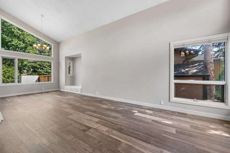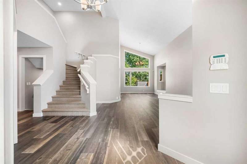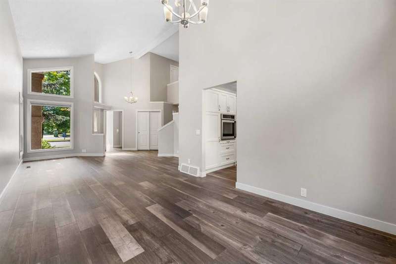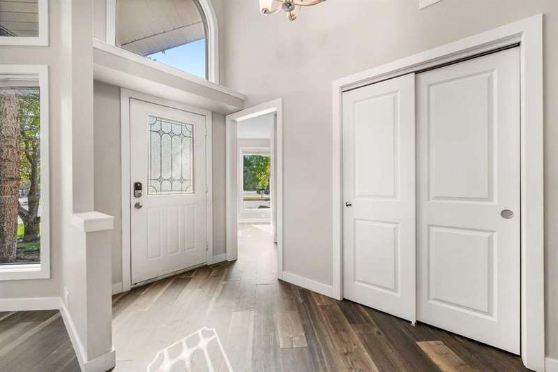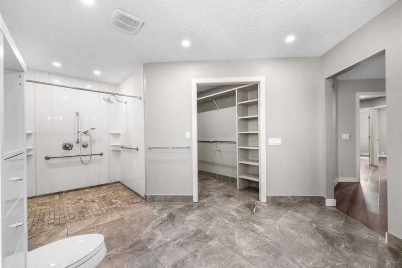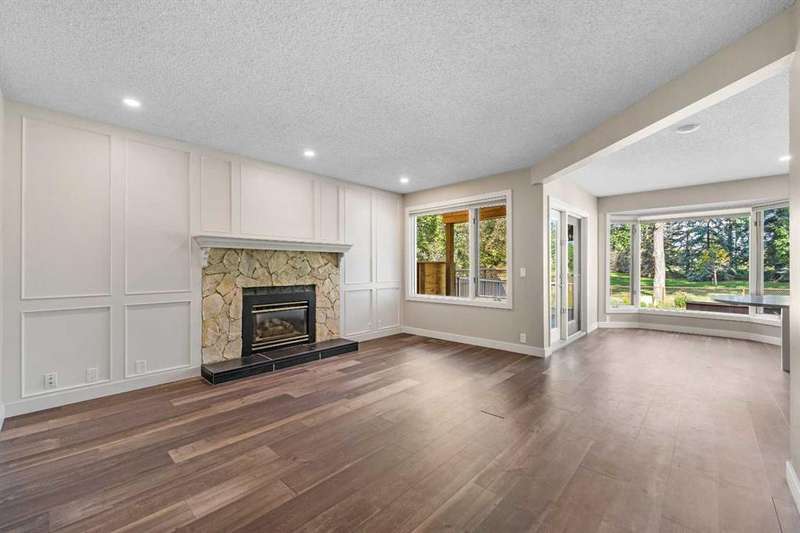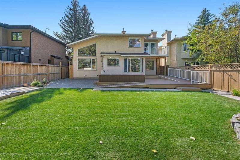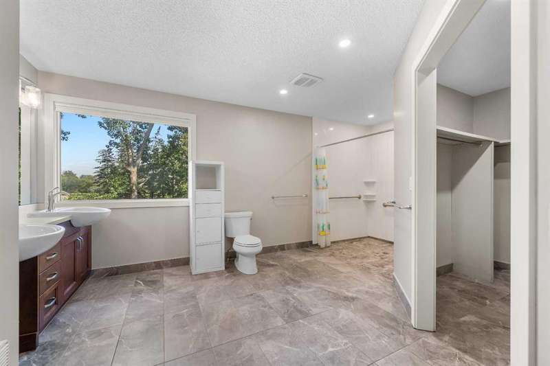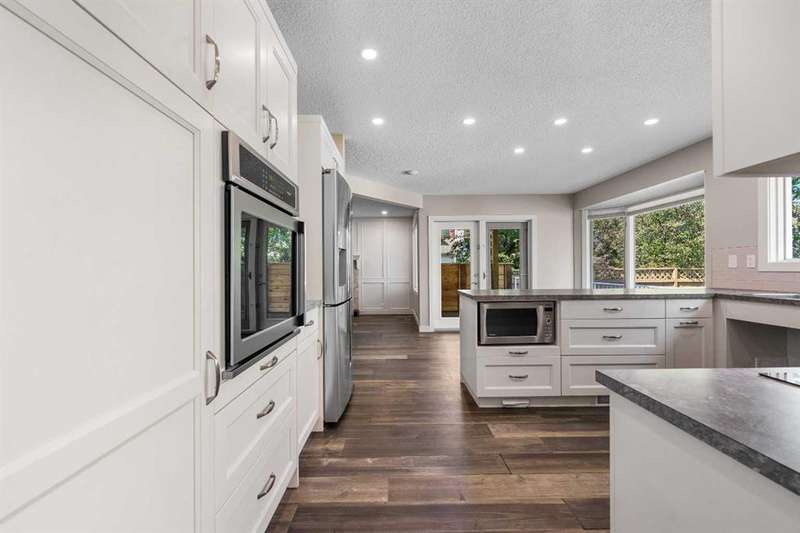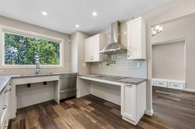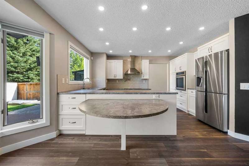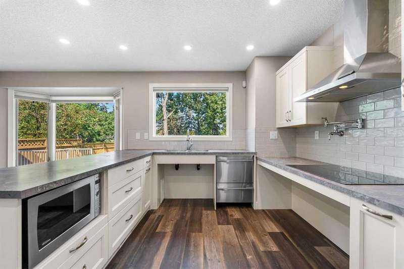 This rare and fully accessible two-storey home offers a unique combination of thoughtful design, modern updates, and an incredible location backing directly onto a beautiful green space. With its private residential elevator, accessible kitchen, and bright open layout, this home is a one-of-a-kind opportunity for multi-generational living or for those seeking a long-term, barrier-free property in a sought-after Calgary community. The main floor welcomes you with large, bright windows that flood the space with natural light and showcase the treed views. The open-concept design features a spacious living room, recessed lighting, and a beautiful stone-faced fireplace that serves as a warm and inviting focal point. The seamless flow into the kitchen and dining areas makes this home as functional as it is inviting. The kitchen is both stylish and highly functional, offering white cabinetry, generous storage, a subway tile backsplash, and a full suite of stainless steel appliances. An upgraded induction cooktop with pot filler, wall oven, and large French-door refrigerator provide all the conveniences of a chef’s kitchen, while the built-in microwave, breakfast bar, and dedicated casual dining space make it perfect for everyday living. Large picture windows frame views of the backyard and green space beyond, creating a bright and welcoming environment for cooking, dining, or gathering with friends and family. Accessibility is front and center in this home’s design. The elevator provides easy access between levels, connecting the main living areas with upstairs bedrooms, the garage, and the basement. Whether for mobility needs, aging in place, or multi-generational living, this thoughtful addition adds peace of mind and long-term value. Upstairs, generously sized bedrooms and bright secondary spaces allow for flexible living. The primary bedroom features a Juliet balcony, a large accessible ensuite with a curbless shower and an accessible sink with a large walk-in closet. A second well-sized bedroom, 4-piece bathroom and elevator access complete this floor. The outdoor living space is just as impressive as the interior. A massive composite deck provides ample space for entertaining or relaxing, while the lower patio offers additional options for outdoor living. The backyard is complete with a storage shed and a dedicated dog area, all overlooking the private green space directly behind the property. With no rear neighbours and mature trees framing the yard, you’ll enjoy both privacy and a direct connection to nature. Additional highlights include rear-in-ground sprinklers, an oversized double attached garage, fresh contemporary finishes, and modern flooring that ties the entire home together. If you’ve been looking for a fully accessible home without compromising on style, location, or functionality, this property is the one. Combining thoughtful upgrades, bright open spaces, and an unbeatable setting backing onto parkland, it delivers on every level.