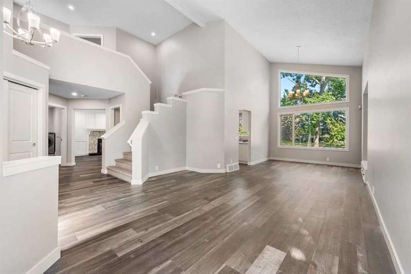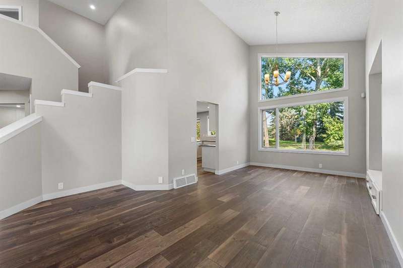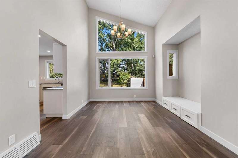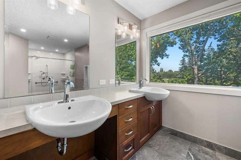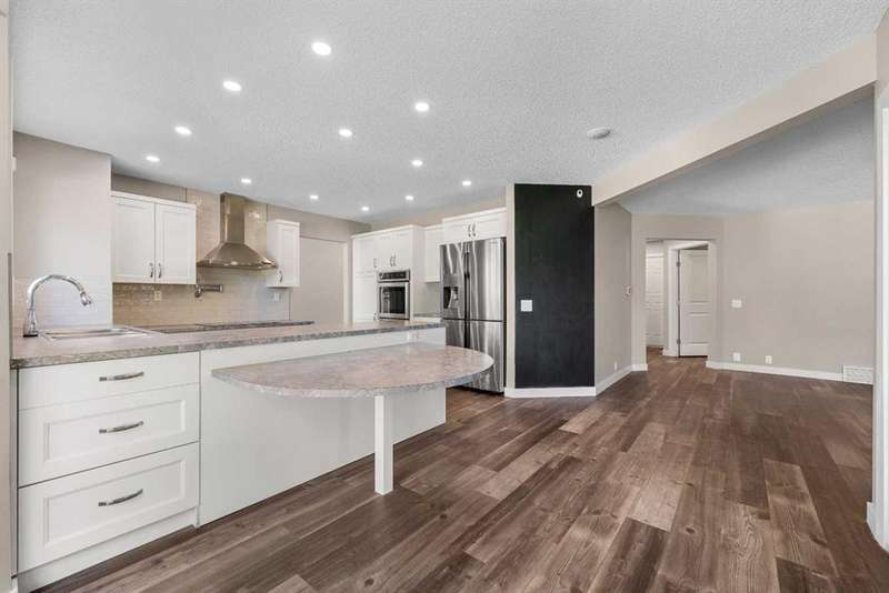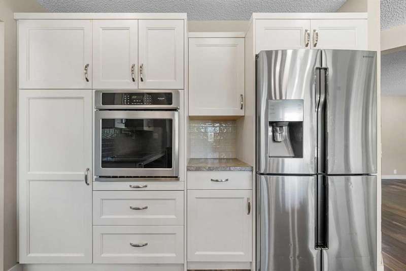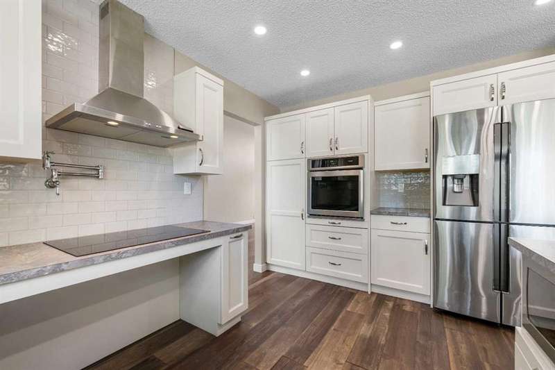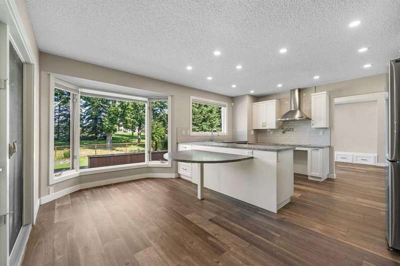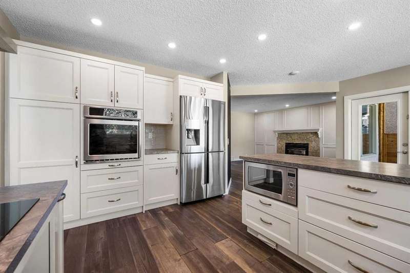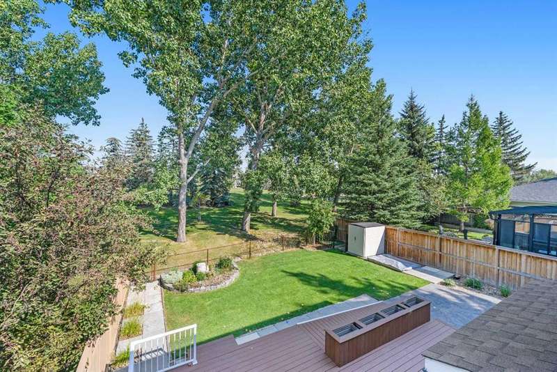This rare and fully accessible two-storey home offers a unique combination of thoughtful design, modern updates, and an incredible location backing directly onto a beautiful green space. With its private residential elevator, accessible kitchen, and bright open layout, this home is a one-of-a-kind opportunity for multi-generational living or for those seeking a long-term, barrier-free property in a sought-after Calgary community. The main floor welcomes you with large, bright windows that flood the space with natural light and showcase the treed views. The open-concept design features a spacious living room, recessed lighting, and a beautiful stone-faced fireplace that serves as a warm and inviting focal point. The seamless flow into the kitchen and dining areas makes this home as functional as it is inviting. The kitchen is both stylish and highly functional, offering white cabinetry, generous storage, a subway tile backsplash, and a full suite of stainless steel appliances. An upgraded induction cooktop with pot filler, wall oven, and large French-door refrigerator provide all the conveniences of a chef’s kitchen, while the built-in microwave, breakfast bar, and dedicated casual dining space make it perfect for everyday living. Large picture windows frame views of the backyard and green space beyond, creating a bright and welcoming environment for cooking, dining, or gathering with friends and family. Accessibility is front and center in this home’s design. The elevator provides easy access between levels, connecting the main living areas with upstairs bedrooms, the garage, and the basement. Whether for mobility needs, aging in place, or multi-generational living, this thoughtful addition adds peace of mind and long-term value. Upstairs, generously sized bedrooms and bright secondary spaces allow for flexible living. The primary bedroom features a Juliet balcony, a large accessible ensuite with a curbless shower and an accessible sink with a large walk-in closet. A second well-sized bedroom, 4-piece bathroom and elevator access complete this floor. The outdoor living space is just as impressive as the interior. A massive composite deck provides ample space for entertaining or relaxing, while the lower patio offers additional options for outdoor living. The backyard is complete with a storage shed and a dedicated dog area, all overlooking the private green space directly behind the property. With no rear neighbours and mature trees framing the yard, you’ll enjoy both privacy and a direct connection to nature. Additional highlights include rear-in-ground sprinklers, an oversized double attached garage, fresh contemporary finishes, and modern flooring that ties the entire home together. If you’ve been looking for a fully accessible home without compromising on style, location, or functionality, this property is the one. Combining thoughtful upgrades, bright open spaces, and an unbeatable setting backing onto parkland, it delivers on every level.
