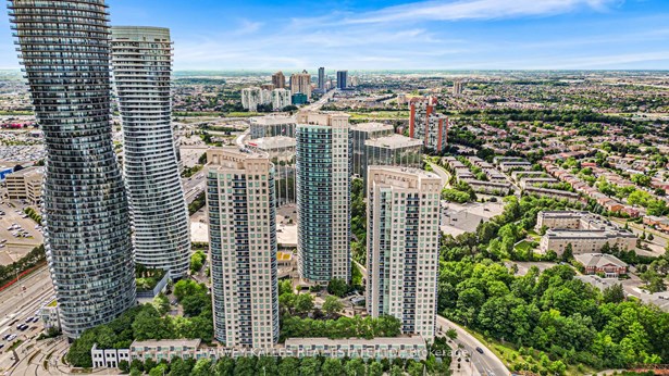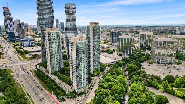 Welcome to this bright and spacious corner unit 2-bedroom, 2-full bathroom condo at the iconic 80 Absolute Ave, offering a rare and highly sought-after 2-car tandem parking plus a private locker and open balcony. This well-designed split-bedroom layout provides excellent flow and privacy, ideal for professionals, couples, or small families. Floor-to-ceiling windows invite natural light and offer tranquil views of the lush green canopy, creating a serene backdrop year-round. This unit has been recently renovated with new flooring, fresh paint and updates made to the bathrooms and new appliances (dishwasher and stove). Located in the heart of downtown Mississauga, you're just minutes from Square One Shopping Centre, fine dining, entertainment, and the future LRT line, with easy access to HWY 403, 401, and QEW perfect for commuters. Residents of this award-winning building enjoy unparalleled amenities, including indoor and outdoor pools, a full fitness centre, squash and basketball courts, theatre room, running track, guest suites, party rooms, 24-hour concierge, and more. Only a handful of units in this building offer a 2-car tandem parking space plus your own private locker directly behind your parking spaces. This unit faces Absolute Ave and does not face the busy street, offering quiet and relaxing views from your private balcony. Don't miss your chance to live in one of Mississauga's most prestigious and amenity-rich communities!