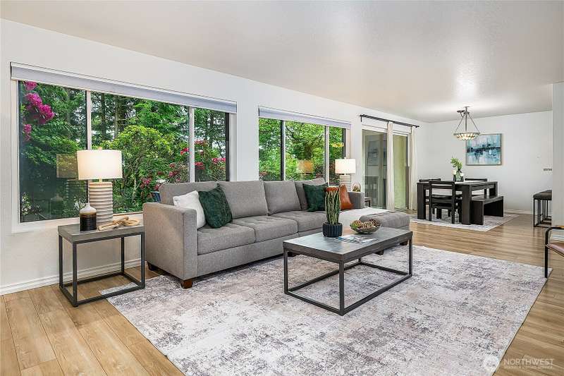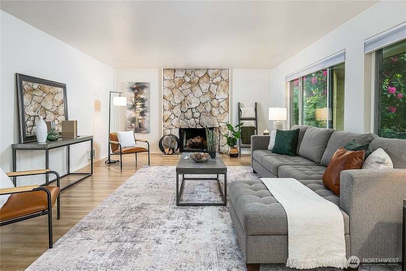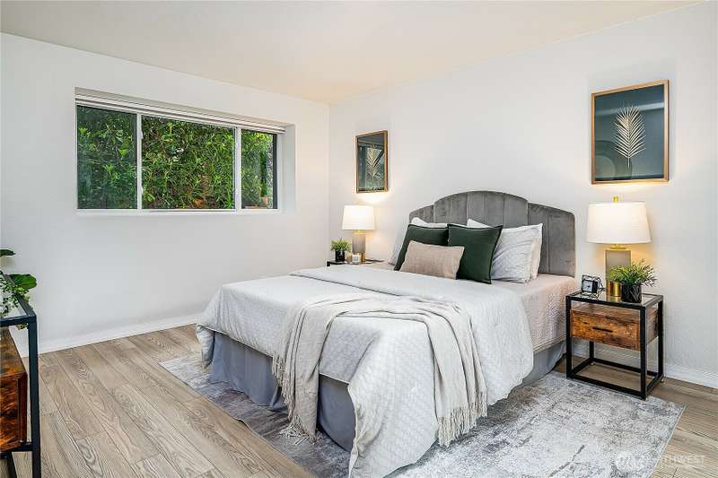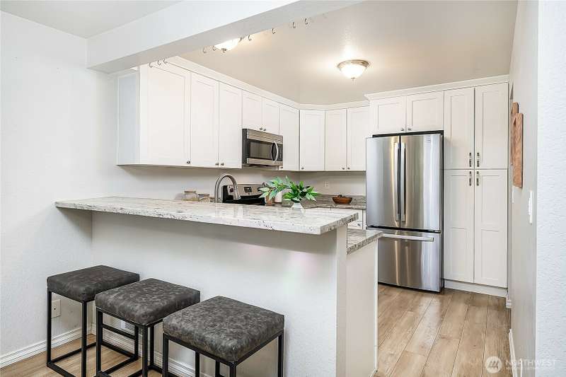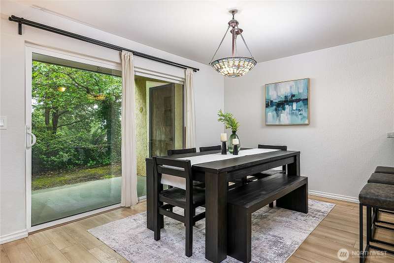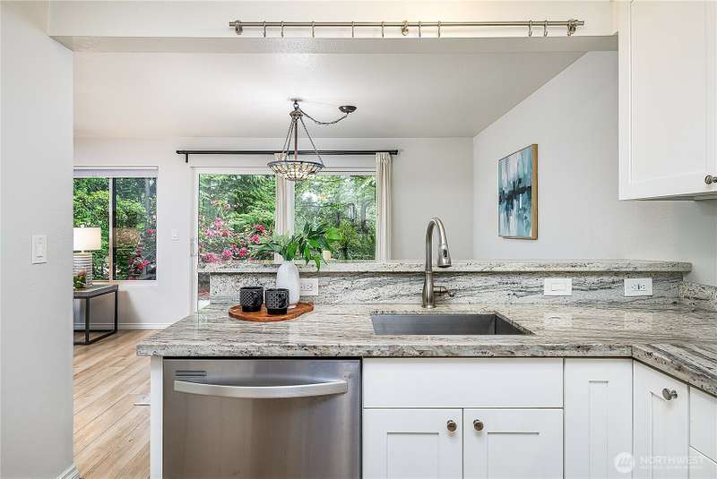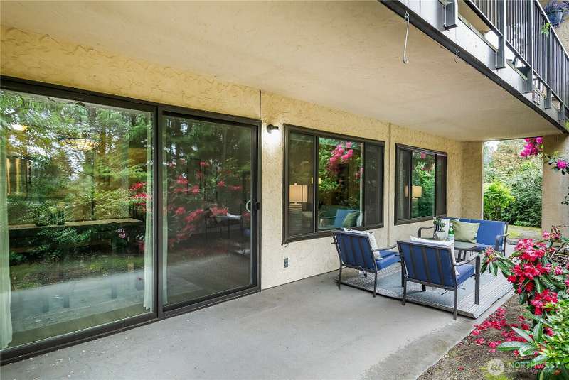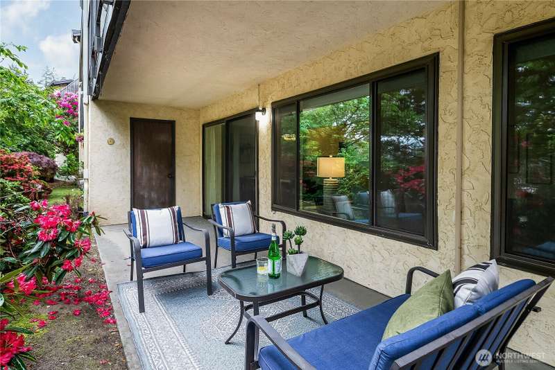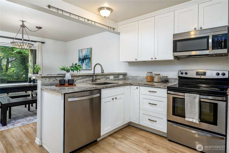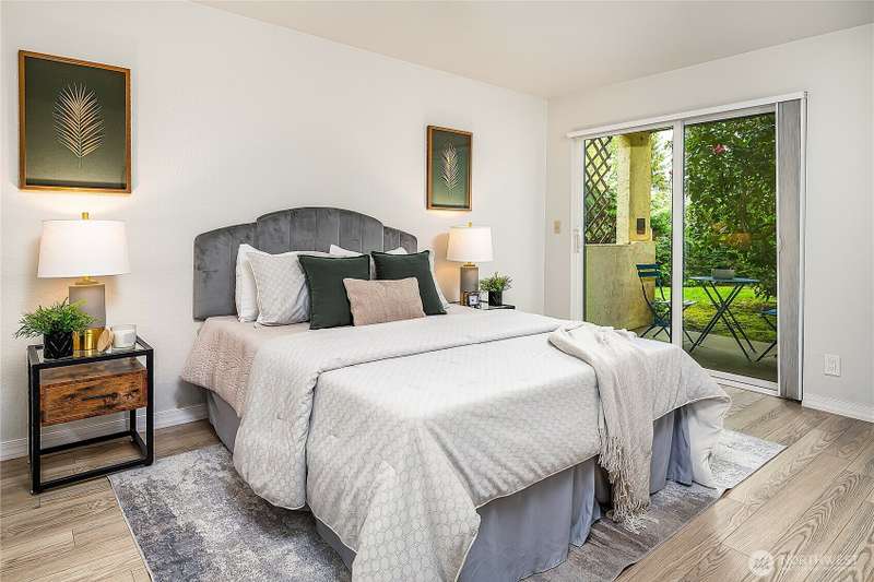 3 bedroom corner unit in a prime Shoreline location is a precious find! This spacious & private home has been thoughtfully updated with a modern kitchen featuring granite countertops, stainless steel appliances, eating bar & refreshed cabinetry. Recent improvements include smart home lighting, Nest thermostat, updated flooring throughout. Each bedroom is generously sized and filled with natural light. The expansive Primary suite includes a custom walk in closet, en suite bath & direct access to a private covered patio, plus additional storage. Located in a well-maintained community offering a pool, abundant guest parking, and 1 reserved space. Minutes to shopping, parks & light rail station. Comfort, style and convenience, all in one!