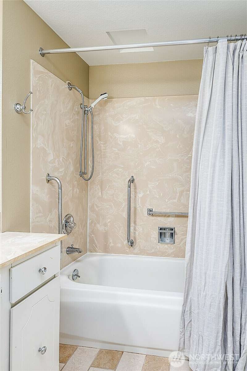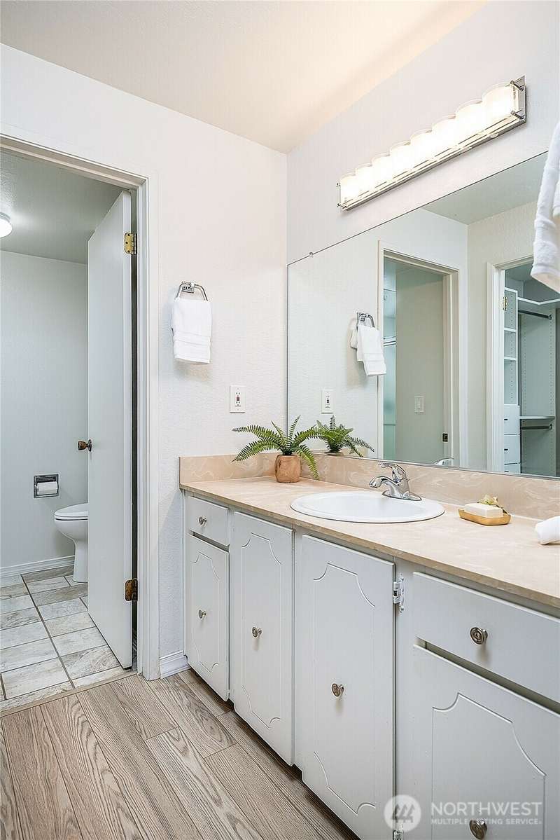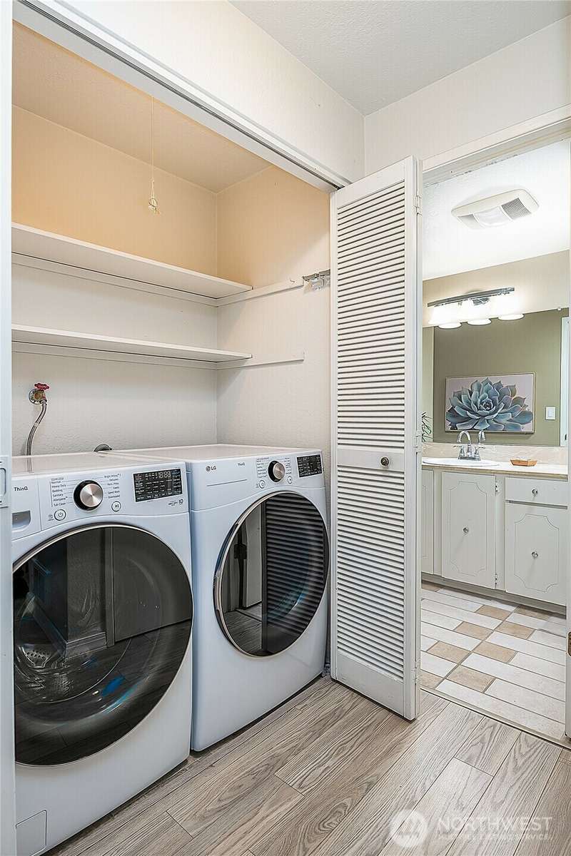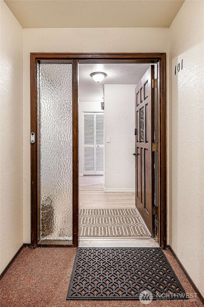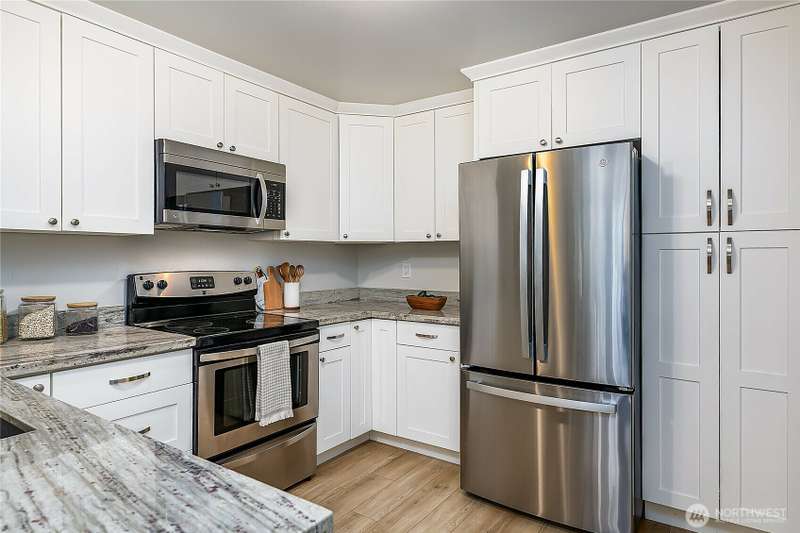 3 bedroom corner unit in a prime Shoreline location is a precious find! This spacious & private home has been thoughtfully updated with a modern kitchen featuring granite countertops, stainless steel appliances, eating bar & refreshed cabinetry. Recent improvements include smart home lighting, Nest thermostat, updated flooring throughout. Each bedroom is generously sized and filled with natural light. The expansive Primary suite includes a custom walk in closet, en suite bath & direct access to a private covered patio, plus additional storage. Located in a well-maintained community offering a pool, abundant guest parking, and 1 reserved space. Minutes to shopping, parks & light rail station. Comfort, style and convenience, all in one!