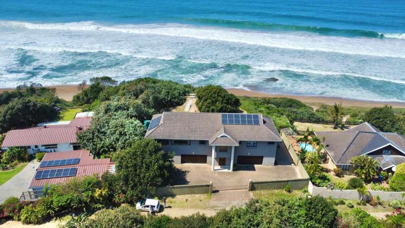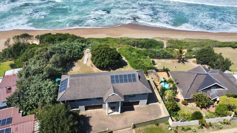 Prime Beachfront Living in Sea Park This spacious and modern 4-bedroom, 4-bathroom home is perched right above the sand in the peaceful coastal suburb of Sea Park. With direct beach access and panoramic sea views, this is the ultimate seaside retreat or holiday home. As you enter the property through a motorized gate, you?ÇÖre greeted by two massive double garages on either side of the house. Whether you need space for multiple vehicles, a workshop, or envision converting one or both into flatlets for extra income or guests, the potential here is endless. Through the large carved front door, a central staircase leads you upstairs into the heart of the home, an airy, open-plan space featuring a modern kitchen, comfortable lounge, and covered dining area with a serving hatch. Glass doors from the lounge frame the ocean and provide direct access to the shore. The main bedroom offers breathtaking sea views, making it a serene place to wake up every morning. All bedrooms are en-suite for added privacy and convenience. Additional features include: ?Çó Two double automated garages ?Çó Solar panels on the roof ?Çó Alarm system, outdoor beams and trellidors throughout ?Çó Backup water tank ?Çó Low-maintenance yard Whether you?ÇÖre a beach lover, entertainer or investor, this home has everything you need. Turn the garages into income-generating flats or keep it as your own private coastal haven. Call or WhatsApp us today to arrange a viewing!