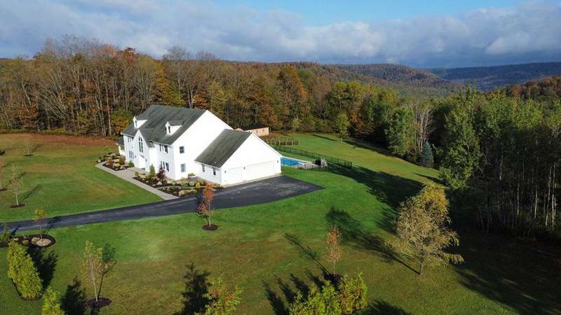 Step into timeless elegance and refined comfort with this exquisite 5,700 sq ft custom-built residence nestled in the heart of Potter County's renowned Dark Skies region. Perfectly positioned close to Coudersport and just 10 minutes from the local hospital, this home offers privacy, convenience, and breathtaking panoramic views. Step into a grand entrance hall, a warm and impressive welcome with architectural charm. A custom kitchen thoughtfully designed with premium finishes, perfect for entertaining or everyday living. Hardwood floors adds warmth and character with spacious living areas and an open-concept, yet intimate, offering rooms for relaxation and entertaining. A large master bedroom with luxurious en-suite bath and walk-in closet. Has 4 bedrooms + 3.5 baths with beautifully appointed high-end fixtures and finishes. 3-Car heated garage with plenty of space for vehicles and outside an in ground heated pool allows you to swim under the stars in total comfort and privacy.