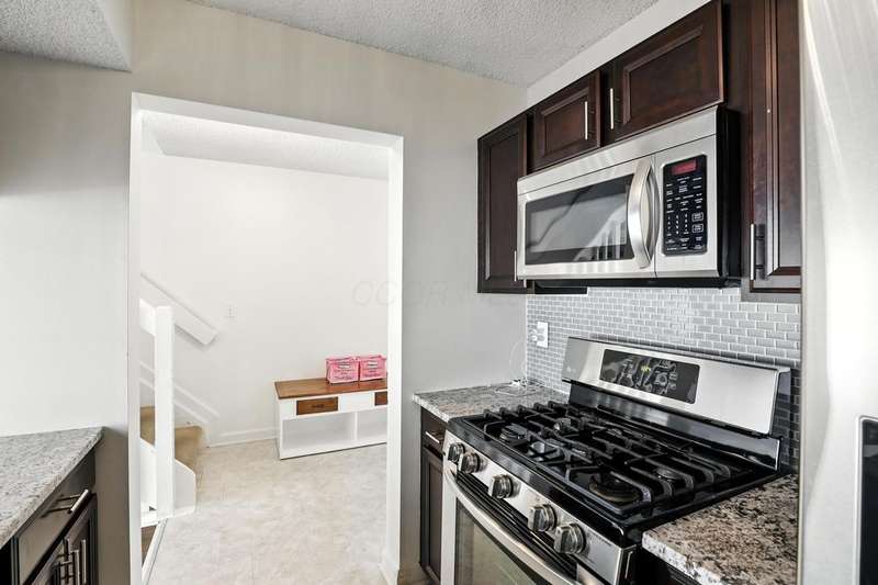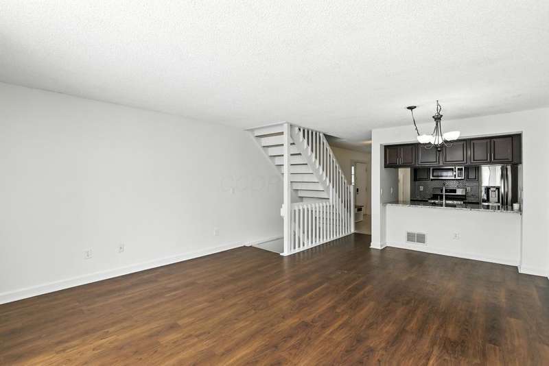 Welcome Home to your large END Unit Condominium!! Move into the desirable Bethel Village Community, featuring a pool, fitness center, and clubhouse. Located in the DUBLIN CITY SCHOOL DISTRICT WITH COLUMBUS TAXES!! Walk in to the large foyer with an attached half bath. This home has been FRESHLY PAINTED with plenty of space for entertaining & relaxation. The kitchen offers granite counter tops and beautiful dark cabinetry, opening to the large living area with plenty of natural light. Upstairs you'll find 2 generously sized bedrooms with 2 full bathrooms, for added convenience and comfort! The finished basement has a potential 3rd bedroom with a full bathroom and space for storage. Out back enjoy your private deck perfect for entertaining or relaxing. This property is located within steps of West Case Park. The future park will feature: basketball courts, pickel ball courts, soccer fields, a library, and walking paths!! Take a look at the planned West Case Park site map within the photos. This home wont last long, schedule your tour today! UPDATES: Furnace/AC 2020. Hot water tank 2022. Garage door and lift 2020.