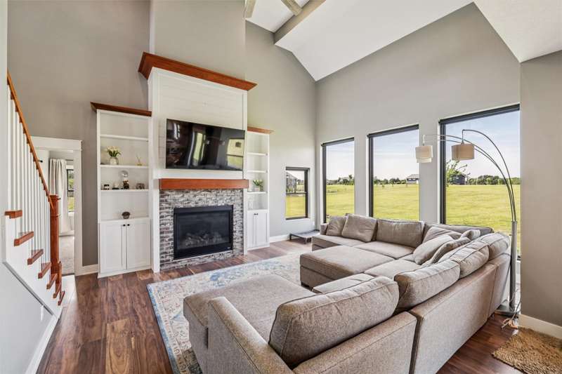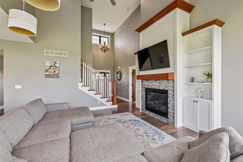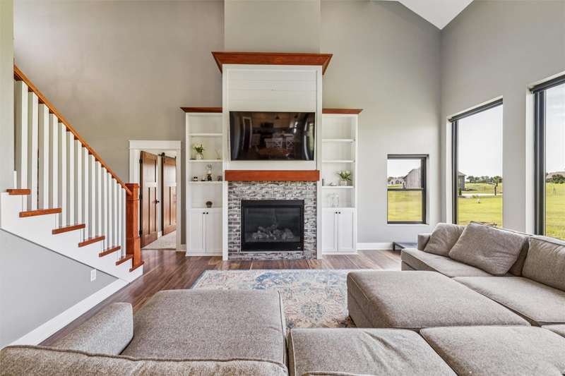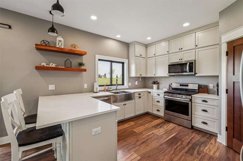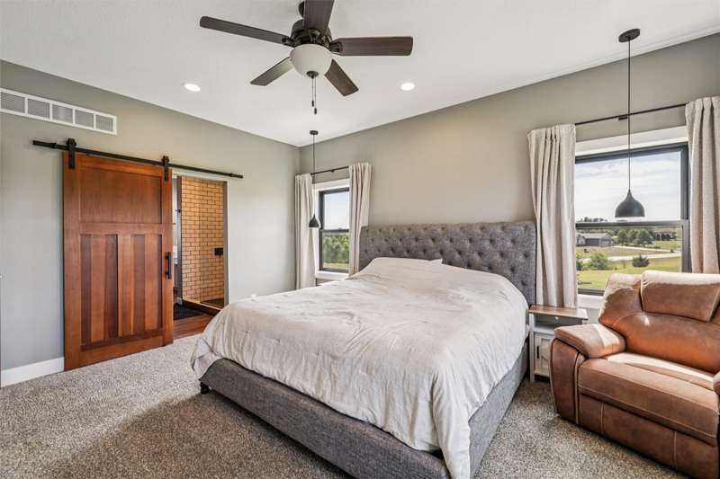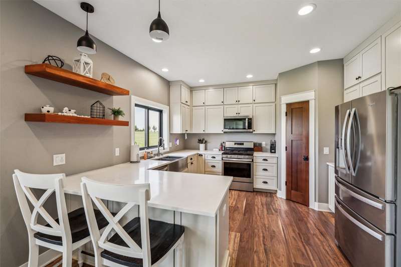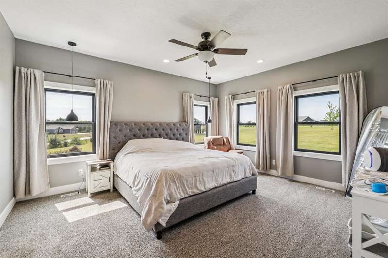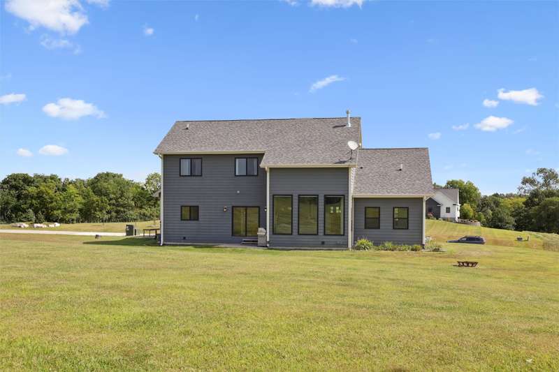 This stunning 1.5-story home sits on just over 3 acres of paved countryside 3miles north of Winterset & only 20 minutes from West Des Moines. With 5 bedrooms plus an exerciseroom, 4 bathrooms, and more than 3,200 sq. ft. of finished living space, this property combines comfort,style, and convenience. Step inside to find a soaring 2-story vaulted great room with a fireplace. The openkitchen features abundant cabinetry, a pantry, quartz countertops, & a gas range, while a formal diningroom & guest bath add to the main-level functionality. The spacious owner's suite is a true retreat w/dualvanities, heated tile floors, a walk-in tile shower, & a large walk-in closet. Upstairs, you'll find 3 additionalbedrooms & a full bath. The finished lower level includes a 5th bedroom, workout room, another full bath,& a large family room w/wet bar - perfect for entertaining or relaxing. Outdoors, the 3+ acre lot offerssweeping views of the rolling Madison Country countryside, plus plenty of space to add an additionalgarage or outbuilding. An assumable 2.9% loan is available - making this property an incredibleopportunity. Don't miss your chance to own this beautiful acreage in a highly sought-after location.