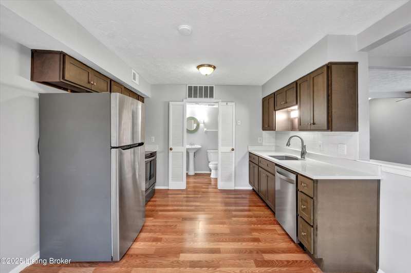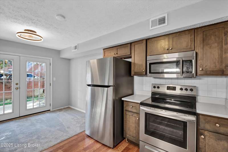 NEW FLOORS! FRESH NEUTRAL PAINT! 2-YEAR-OLD FURNACE! 2-YEAR-OLD AIR CONDITIONER! NEW WINDOWS COMING SOON! Welcome home, to this charming townhome-style condominium in the Shaker Farms community. This 2-bedroom, 1.5-bath home offers comfort, convenience, and tasteful updates throughout. Enjoy a bright and inviting kitchen with new shaker style cabinets, sleek quartz countertops, and stainless appliances. The spacious living area features brand-new carpeting and easy access to your personal outdoor patio. Upstairs, you'll find two comfortable bedrooms and a full bath with a new vanity, mirror, and light fixture. Additional highlights include in-unit laundry and a 1-car attached garage for added convenience. Excellent location close to a Walmart Supercenter, Ford truck plant, restaurants, and quick access to I-265 and I-71making this a perfect, and affordable, place to call home!