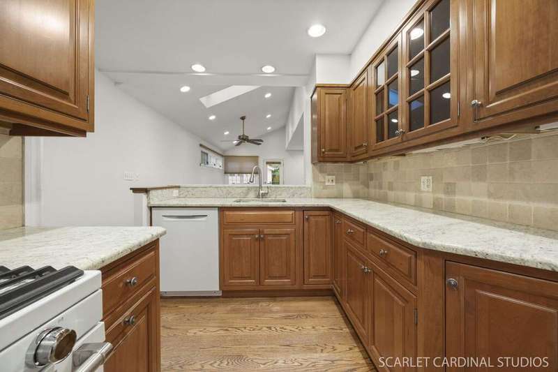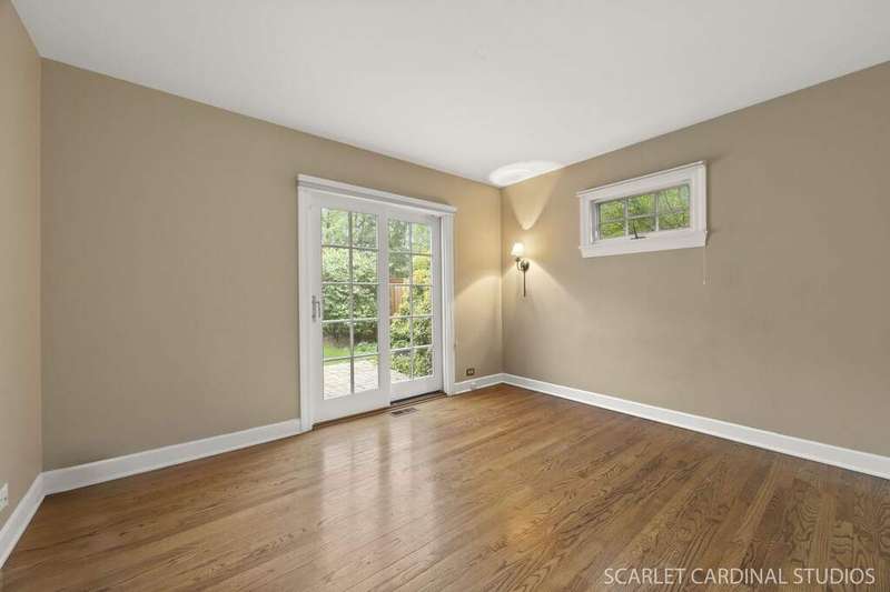 Charming brick ranch nestled in the heart of the quaint Village of Glen Ellyn. Exceptional location near Lincoln Elementary School, Sunset Pool and Park, downtown Glen Ellyn, shops, restaurants, Metra train station, and numerous Village amenities! This well-maintained home is move-in ready and features neutral decor with gleaming hardwood floors throughout. The inviting living room, complete with a cozy fireplace, and the separate dining room create the perfect setting for entertaining guests. An updated kitchen, equipped with granite countertops, custom cabinetry, and a breakfast bar, seamlessly connects to a spacious vaulted and skylit family room with doors leading to a large deck overlooking a deep landscaped yard. The primary bedroom with French doors opens to a private patio, providing a serene retreat. Additional living space can be found in the finished basement, which includes a recreation room and a full bath. You will love spending countless hours entertaining or unwinding on the expansive deck that overlooks the private, parklike, fenced yard.