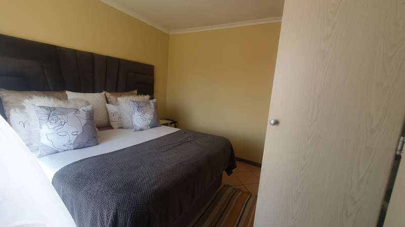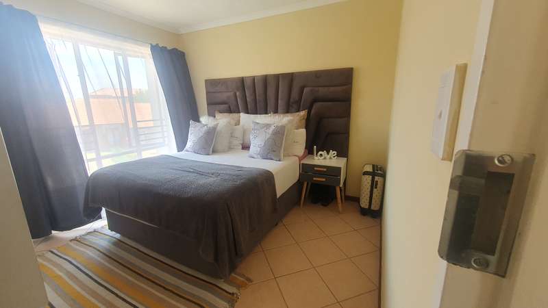 One visit will convince you On entering this flawless 1st floor apartment, which is also a top floor as you only have 2 floors, you are welcomed by a spacious living area. Then you get into a spacious open plan kitchen with natural wood finished cabinets. A breakfast nook with ample cupboards space. You also get enough space for 2 appliances. This wonderful home will offer you two bedrooms with build in cupboards. You get a full bathroom giving you an option of either a bath tap or a shower. The unit is in a complex that is in a secure country estate with security and a 24-hour access control. The country estate itself offers a club house and play area for the kids. You will still get a tennis court and a pool. So keeping fit is just at your figure tips. You do not need to spend more on those gym contracts. The home is located close to mall@55, forest hill and newly build hospital close by. You also have access to Rauslow mall, giving you options for your shopping. You will have easy access to major towns, as you will be a few kilometres from major roads, N14 and R55. Do not let this opportunity pass you by. Call me now to view.