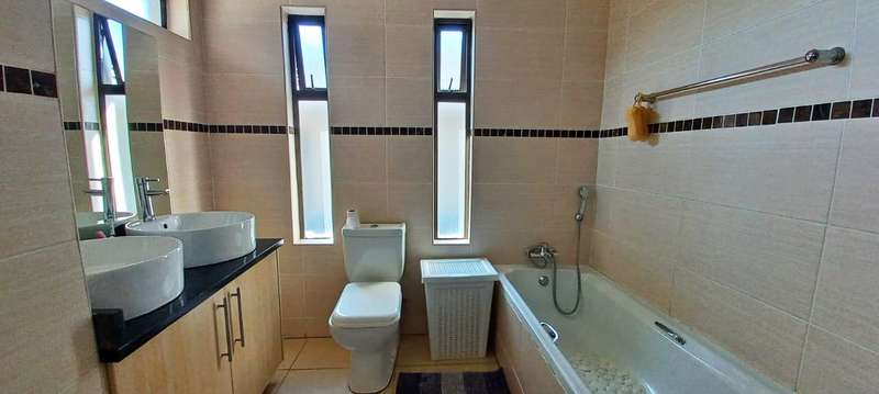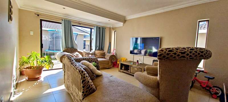 Living a comfortable life in a comfortable environment is what this home offers! This beautiful home is conveniently located and offers 3 bedrooms, 3 bathrooms, an open plan lounge, and a kitchen with modern fitted cupboards. 2 garages. Secure complex. Solar installed.