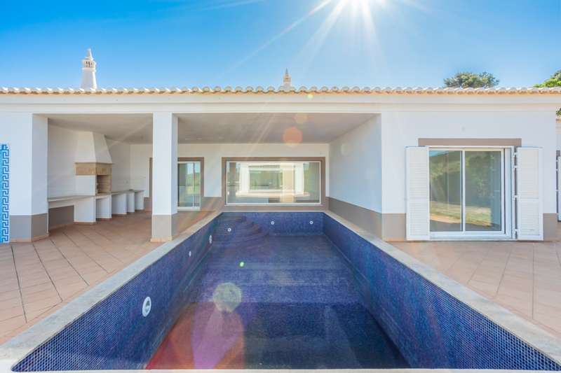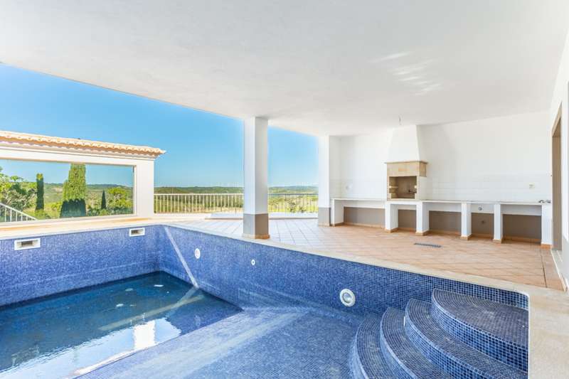 Fully refurbished 4-bedroom villa with pool and garden in Parque da Floresta, Budens, Algarve, next to the Santo António golf course. Meticulously refurbished, this 4-bedroom villa with traditional Algarve architecture features spacious interiors, large windows that naturally illuminate the house and offer panoramic views over the development, with generous outdoor garden areas and terraces. With an inviting and elegant entrance porch, we are led into an elegant living area, the open-plan living room and dining room, with high ceilings and glass parts. The kitchen, equipped with modern appliances, is adjacent to the living area and offers beautiful views and access to a patio where the laundry room is located. A guest bathroom is also located on this floor. On the upper floor, there is access to the swimming pool, terrace and outdoor shower. This leisure area is complemented by the barbecue, an ideal area for socializing and enjoying the excellent climate in the Algarve. This area takes advantage of its elevated position, offering sweeping views over the countryside. A wide corridor leads to four generously-sized bedrooms, all with en-suite bathrooms and built-in closets. Two bedrooms have access to the garden, while the other two have access to the pool terrace. Also on this upper floor is a mezzanine area with a fireplace overlooking the living room. The property is ideally located around a 10-minute drive from white sandy beaches such as Salema and Boca do Rio, the towns of Lagos and Sagres are a 20-minute drive away, while Faro International Airport is 75 minutes away. CHARACTERISTICS:Area: 294 m2 | 3 161 sq ft Bedrooms: 4 Bathrooms: 5 Energy efficiency: Certification in progress FEATURES: 4 bedrooms Fully refurbished Fully equipped kitchen Garden Swimming pool Terraces Barbecue Fireplace