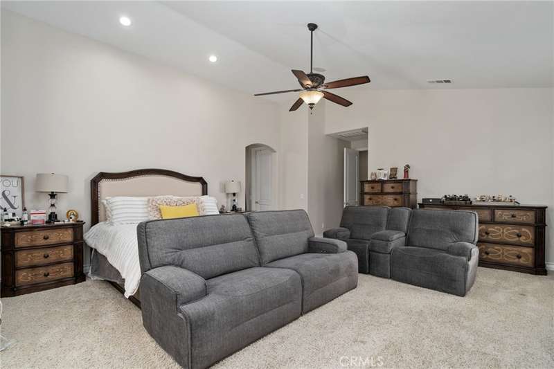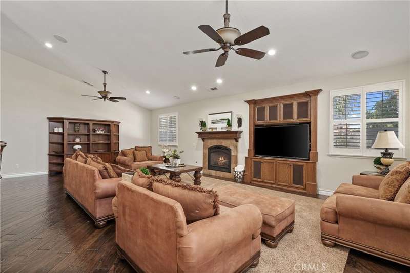 Welcome to The Orchards by Amberhill--a stunning single-story estate offering nearly 4,000 sq ft of luxury living on almost half an acre. This 5-bedroom, 4-bath home features soaring ceilings, an open floor plan, and elegant finishes including crown molding, plantation shutters, custom woodwork, and travertine flooring. The chef's kitchen boasts a large island with farmhouse sink, granite counters, and a spacious breakfast nook that opens to the family room. The primary suite is a true retreat with vaulted ceilings, fireplace, spa-inspired bath, and custom cabinetry. Designed for entertaining, the backyard showcases a rock saltwater pool with waterfalls, a covered patio with fans and built-in stereo, gazebo, and shuffleboard court. Gated RV parking and a 3-car garage with epoxy floors complete this one-of-a-kind property.
