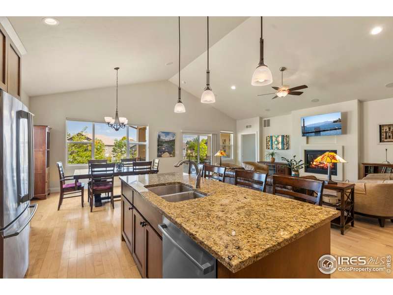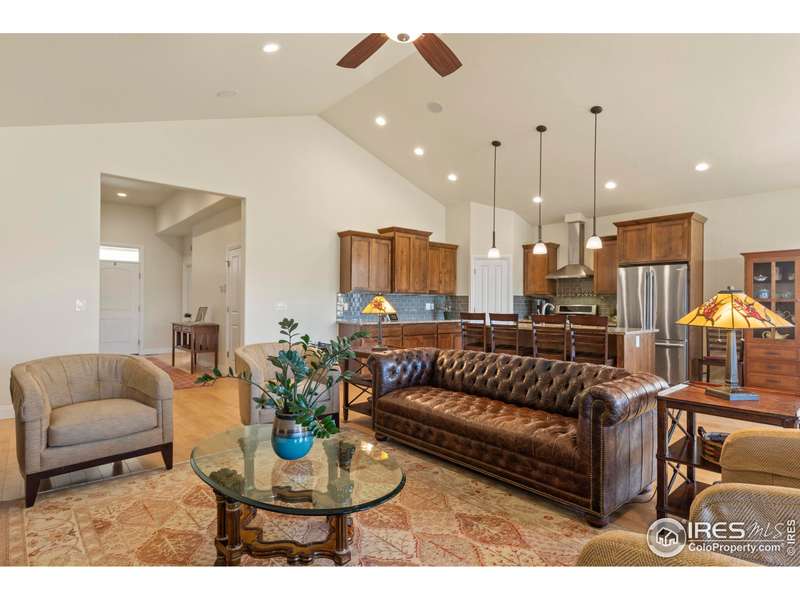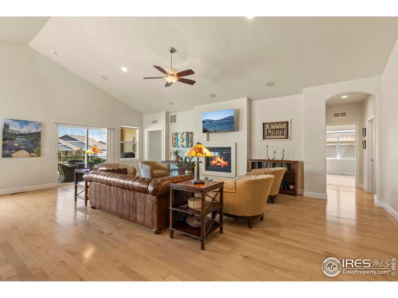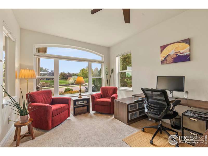 Welcome to this beautifully maintained 4 bed, 3 bath ranch home with walk-out basement in The Enclave at Registry Ridge. Inside, an open floor plan with quality finishes and thoughtful upgrades flows seamlessly, featuring a spacious primary suite with a cozy fireplace and a luxurious 5-piece accessible bath. Enjoy low maintenance and main level living with the primary bedroom, laundry, kitchen, DR, LR, and office all on the main level. Perfectly positioned across from a neighborhood park and backing to HOA open space with community garden plots, it offers a spacious and light-filled atmosphere. HOA maintains the open space and plows the snow all the way to the front doorstep. Meticulously cared for and move-in ready, this home is a true gem. Owned solar panels and 220V garage hook-up are an added bonus.