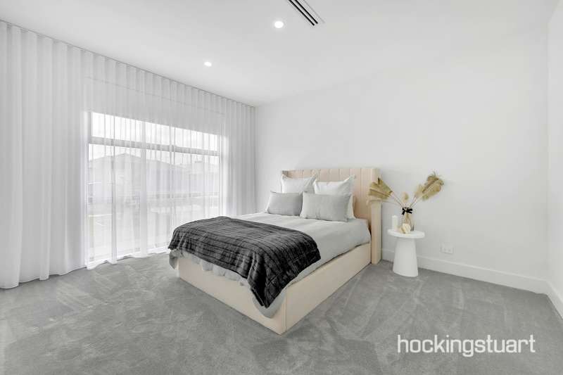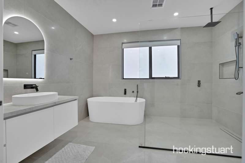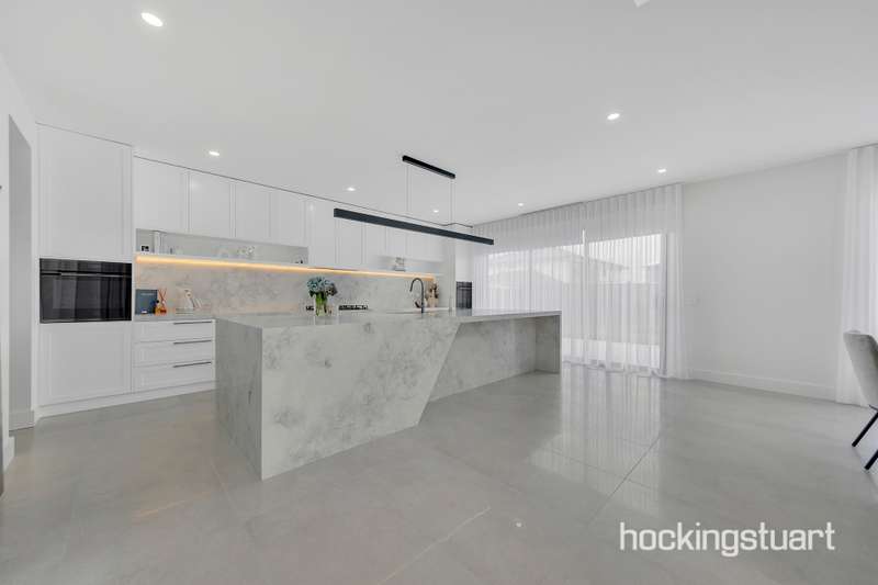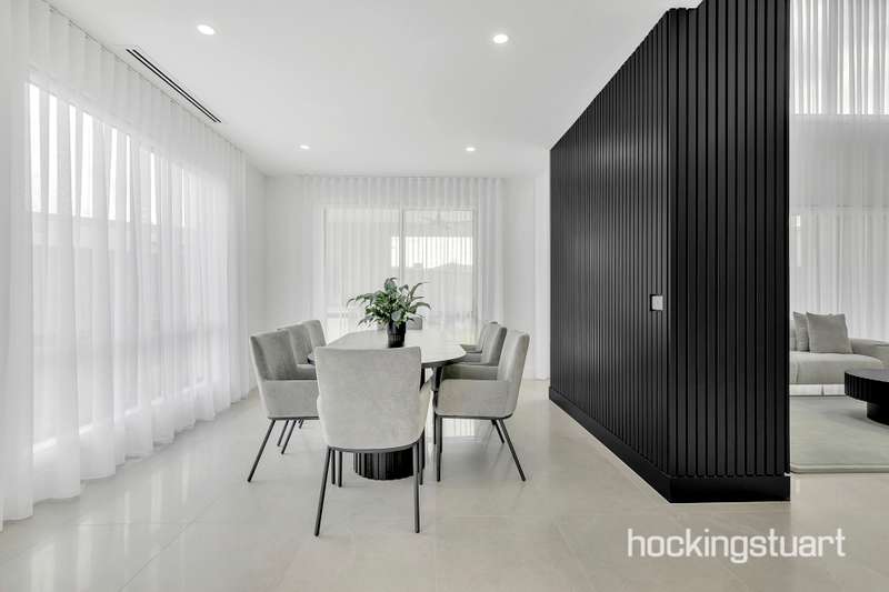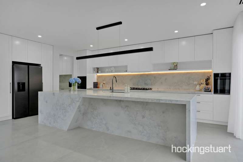 Step into a world of timeless elegance and architectural brilliance with this luxurious single-level masterpiece. Meticulously crafted to impress, this home blends sophisticated design with functional comfort, offering premium finishes and thoughtfully curated interiors throughout. From the moment you arrive, the striking custom façade and gallery-inspired entrance hall set the tone for what’s to come—an awe-inspiring living experience designed for those who appreciate style, space, and serenity. The light-filled front lounge with soaring ceilings and ambient LED feature lighting sets a mood more indulgent than a five-star retreat. The central living and dining area is the heart of the home—anchored by a designer fitting and extending seamlessly to your outdoor oasis. The gourmet kitchen is a showstopper—straight out of a magazine. It boasts a large stone island bench, premium 900mm appliances, and an expansive butler’s pantry—perfect for entertainers. The adjoining built-in bar area and outdoor kitchen in the alfresco provide the ultimate setup for effortless gatherings. Outdoor Entertaining, Redefined Entertain with ease in your beautifully landscaped backyard with lush artificial grass—perfect for hosting family BBQs or weekend celebrations. The exposed aggregate surfaces and fully fenced surrounds make this space as practical as it is stunning. Comfort for the Whole Family Enjoy the privacy and comfort of four oversized bedrooms—two with its own bathroom and walk-in robe. All bathrooms are fully tiled to the ceiling and feature elegant double vanities and high-end tapware. ________________________________________ Property Highlights: •Custom architect-designed façade •Two master bedrooms •Spacious open-plan living •Gourmet kitchen with stone island, 900mm appliances & butler’s pantry •Refrigerated heating and cooling •Designer bathrooms with LED mirrors & double vanities •Backlit LED lighting and sheer curtains throughout •High ceilings, high internal doors •Fully landscaped front and backyard with exposed aggregate & artificial turf •Alarm system & concrete perimeter pathing •Upgraded laundry with backyard access PHOTOS FOR ILLUSTRATIVE PURPOSES ONLY!!