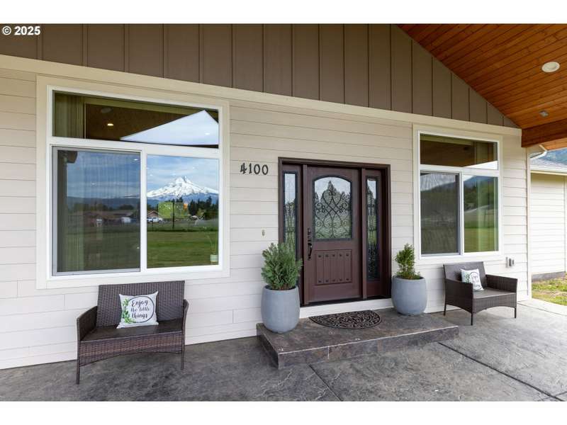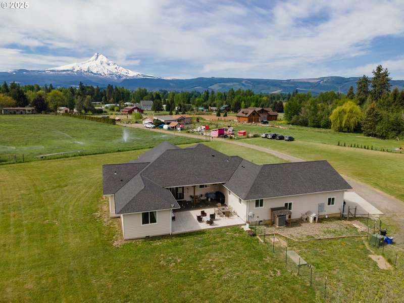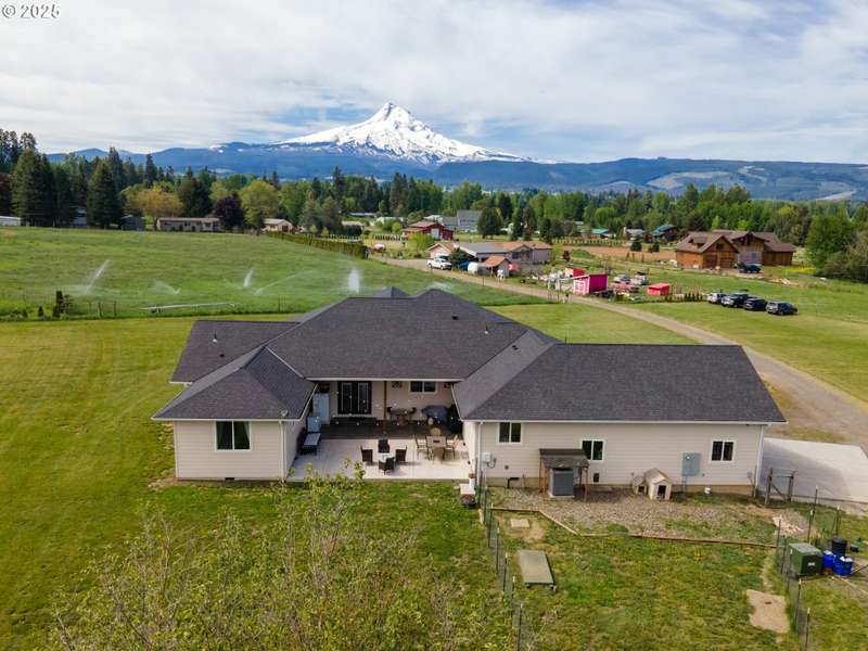 Custom-built one-story home offers the perfect blend of elegance, comfort, and breathtaking scenery. Featuring four spacious bedrooms and three full bathrooms, this property is designed with an open-concept layout that maximizes space.Step into a gourmet kitchen, complete with high-end appliances, custom cabinetry, and a generous island, ideal for entertaining. The adjoining living area boasts vaulted ceilings, and windows that frame an awe-inspiring Mt. Hood view—a daily masterpiece right outside your door.The primary suite is a private retreat, showcasing a spa-like en suite bath with a soaking tub for two, walk in shower, and two walk in closets. Three additional bedrooms located on the opposite side of the home provide comfort for family, guests or office.Outside, enjoy the spacious patio, and room for outdoor recreation or gardening. Whether you're gazing at sunrise over Mt. Hood or hosting a summer barbecue, the setting is unparalleled.Located approximately 15 minutes from downtown Hood River and 30 minutes from Mt. Hood Meadows Ski Resort, this home offers the best of both worlds—peaceful rural living with easy access to downtown and world-class outdoor adventures.Don’t miss this rare opportunity to own a slice of Pacific Northwest paradise!