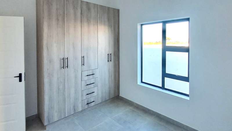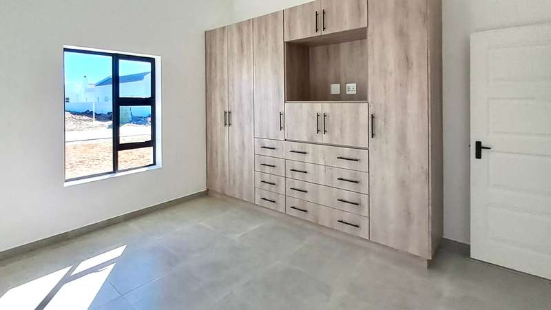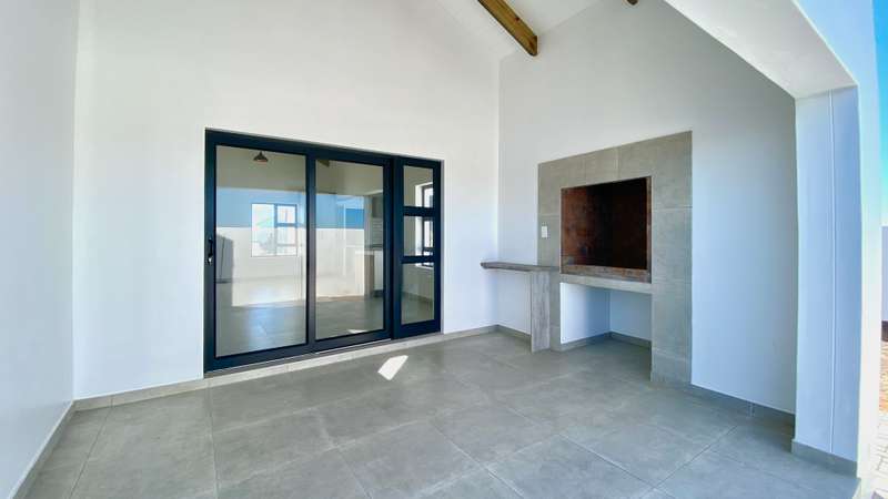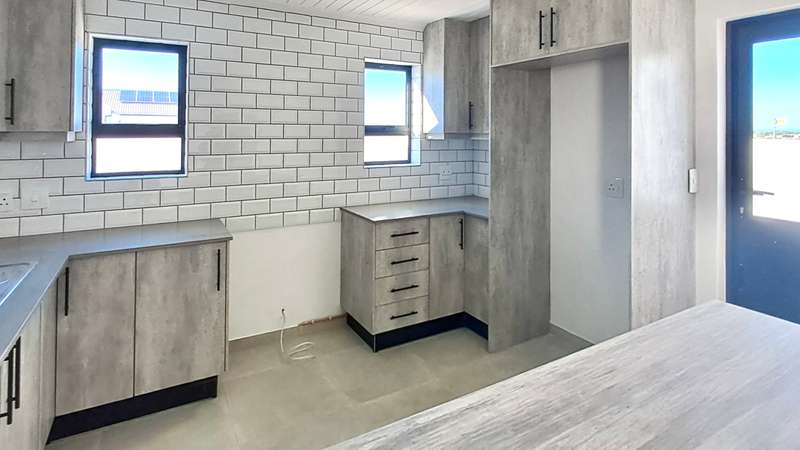 Coastal Bliss Awaits: Brand-New 3-Bedroom Home Steps from the Beach in Atlantic Sands South! Plot and plan Discover the epitome of comfortable coastal living in this newly completed, move-in-ready home within the secure and sought-after Atlantic Sands South development. Perfect as a permanent residence or an idyllic holiday escape, this neat and stylish property boasts three generous bedrooms and two contemporary bathrooms. The heart of the home is a welcoming open-plan kitchen and lounge, designed for modern living. The kitchen is a chef's delight with built-in cabinets, a practical center island, and ample space for a double-door fridge. For ultimate convenience, it offers direct access to the double garage. The lounge effortlessly extends through a sliding door to a covered patio featuring a built-in braai – your ideal spot for relaxed entertaining no matter the season. Retreat to the master bedroom, complete with built-in closets and a private en-suite shower bathroom. The two additional bedrooms also feature built-in closets and share a full family bathroom, offering both a bath and a shower. Outside, the partially paved yard ensures low-maintenance outdoor enjoyment, and the entire property is securely walled for your peace of mind. Best of all, with direct access to the beach just a short stroll away, this home perfectly blends coastal charm with everyday convenience. Other features include: retractable roof fans, 1.8 meter walls for privacy, outside solid aluminum gates, solar geyser. Ready to embrace the Atlantic Sands lifestyle? Contact us today to view this stunning home!