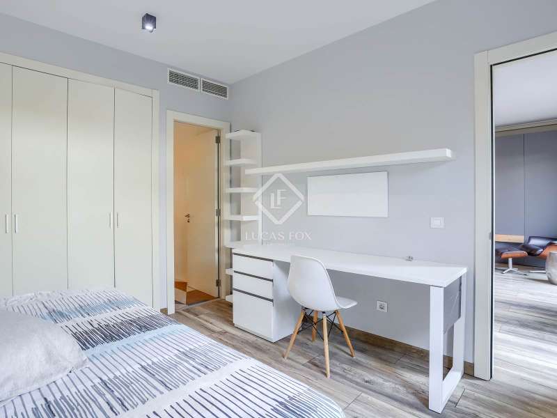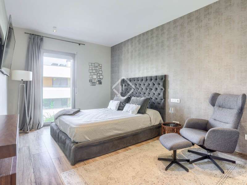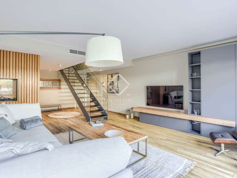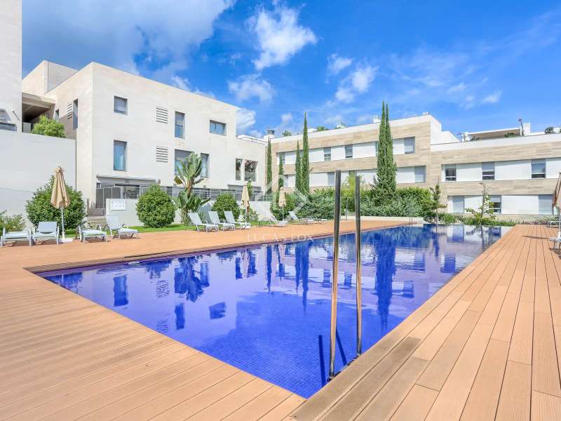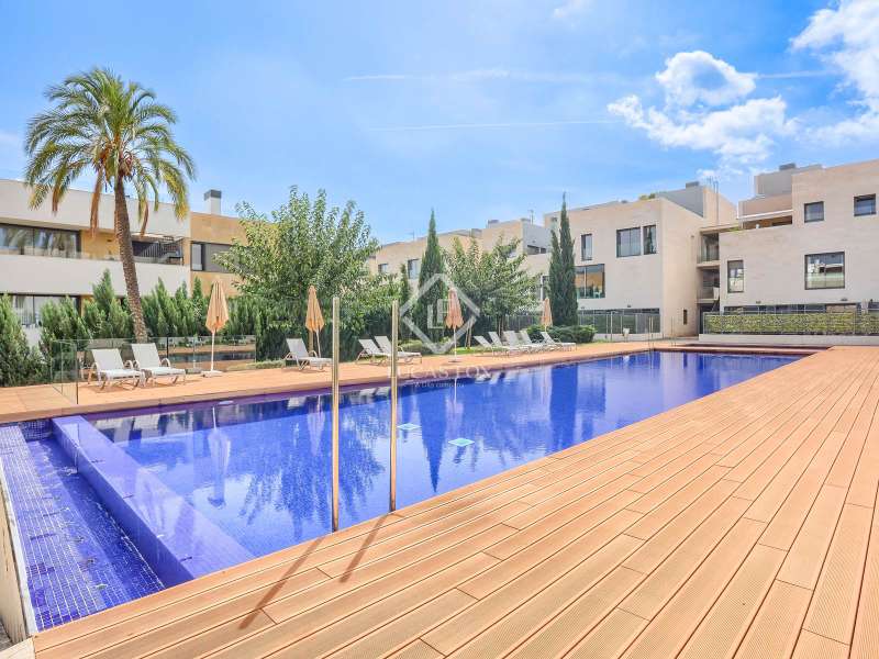 This beautifully designed, light-filled duplex is situated in one of Palma’s most sought-after areas, surrounded by exclusive golf courses and several renowned international schools. Located within a charming and prestigious residential complex, it offers both comfort and sophistication in equal measure. The spacious, contemporary living room with a fireplace provides the perfect setting for cozy evenings or lively gatherings in a relaxed and stylish atmosphere. From here, you step out onto a generous terrace featuring a comfortable seating area and an electric awning—ideal for enjoying Mallorca’s sunny climate. The living room also connects to a sleek, fully equipped kitchen with access to an additional terrace, creating a seamless indoor-outdoor lifestyle. The main floor also houses the master bedroom, complete with an en-suite bathroom and electric shutters for added convenience. Upstairs, you’ll find three additional bedrooms, all with built-in wardrobes, elegantly connected by a stylish hallway to two more bathrooms. A large built-in closet in the corridor offers further storage, and one of the bedrooms is currently furnished as a walk-in wardrobe—ready to use as is or easily adapted. Back on the ground floor, just a few steps away, the meticulously maintained communal area invites you to relax and unwind. Residents enjoy access to two swimming pools, a refined sunbathing area, and beautifully landscaped gardens. The property includes two private parking spaces and a storage room equipped with shelving. Additional parking spaces are available to rent if needed. Most of the furnishings and accessories can be purchased as well—making this an ideal turnkey solution for those relocating to the island. Just pack your bags and move in.