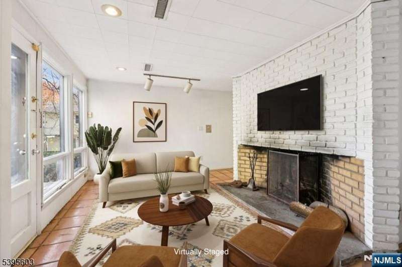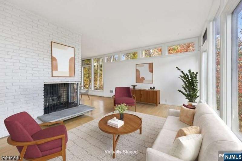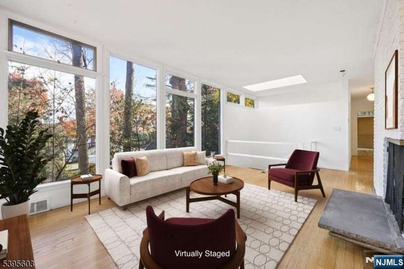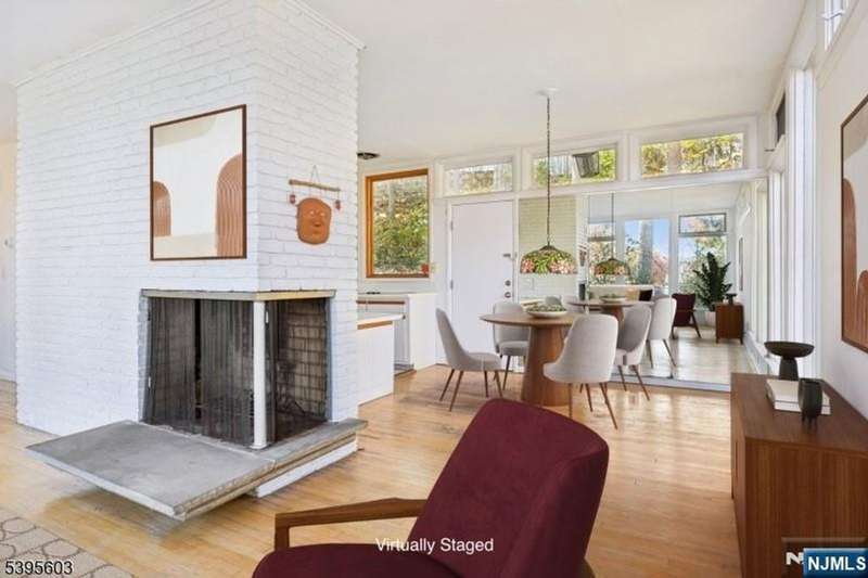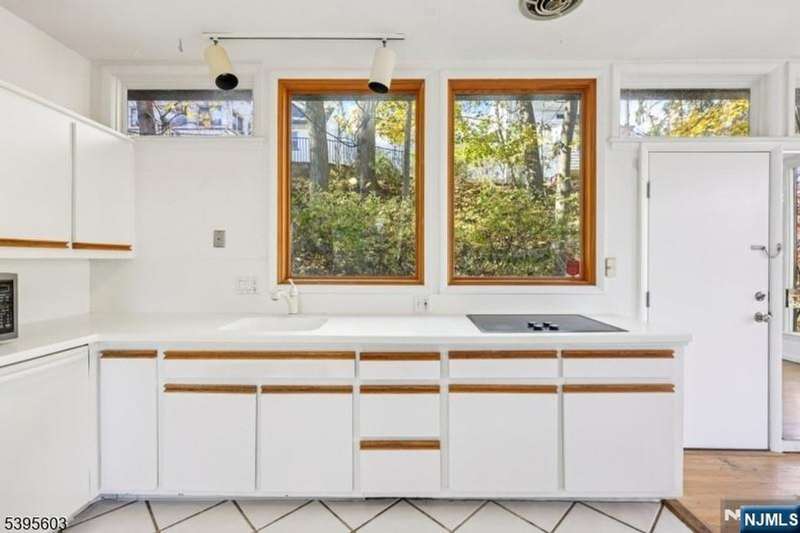 This striking custom-designed residence offers an exceptional blend of architectural character and modern potential, all on an oversized lot! The main level features soaring windows in the living room, dining room, and kitchen, filling the home with natural light and seamless connection to the outdoors. The spacious primary suite includes a large walk-in closet and custom shutters and built-in makeup vanity for both comfort and privacy. With two fireplaces one on each level and full bathrooms on both floors, the home is perfectly suited for entertaining. The walkout lower level opens to a patio and expansive yard, creating an ideal setting for gatherings. A covered carport adds convenience, while the large lot provides both privacy and space. This home is ready for a buyer's finishing touches to perfect its unique details and finishes. Conveniently located near restaurants, shopping, schools, public transportation, houses of worship, and jitney service, this property offers both style and practicality in a prime location.