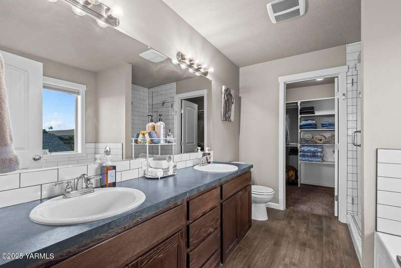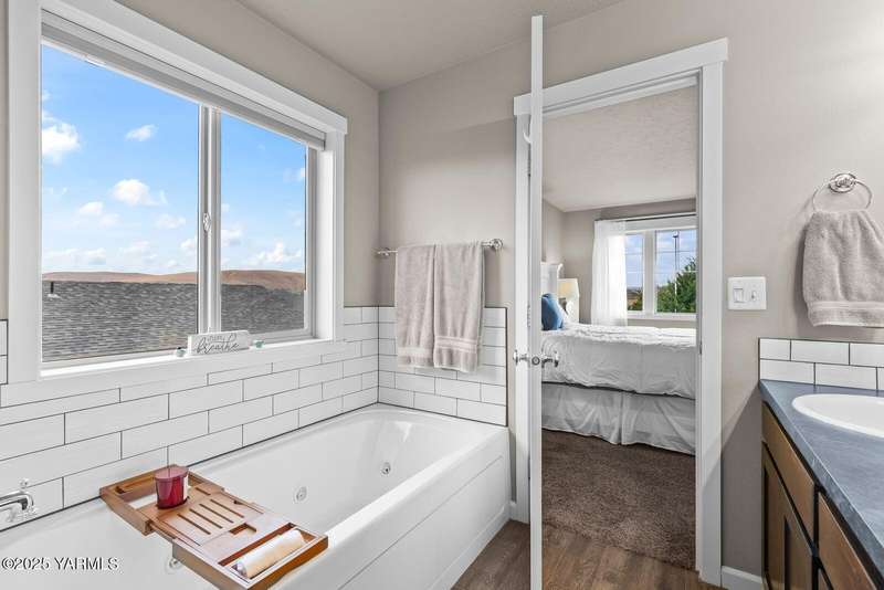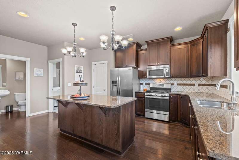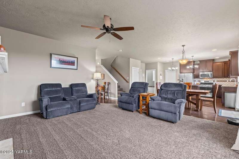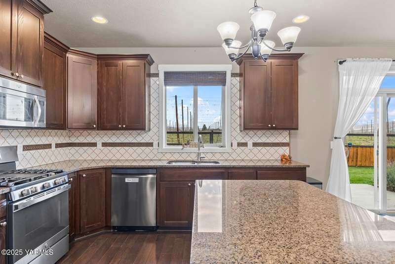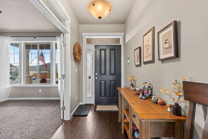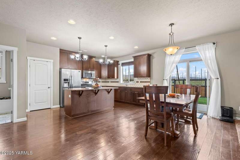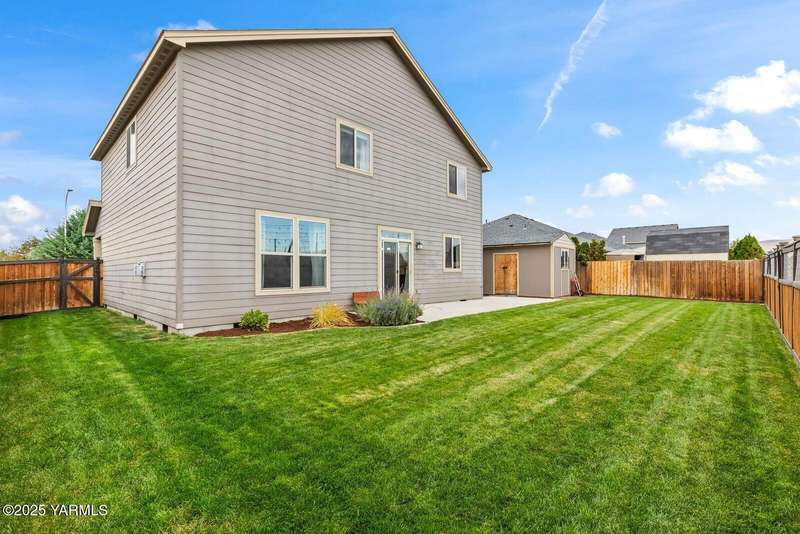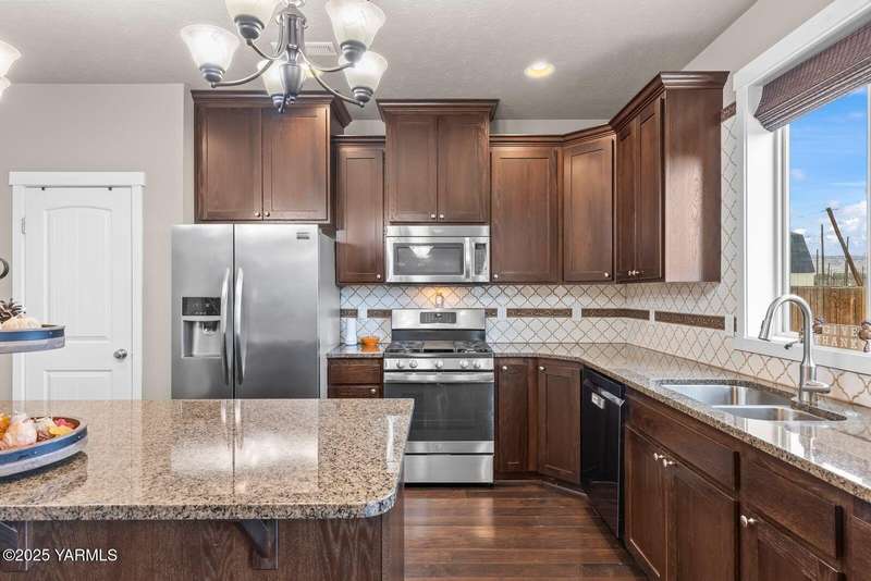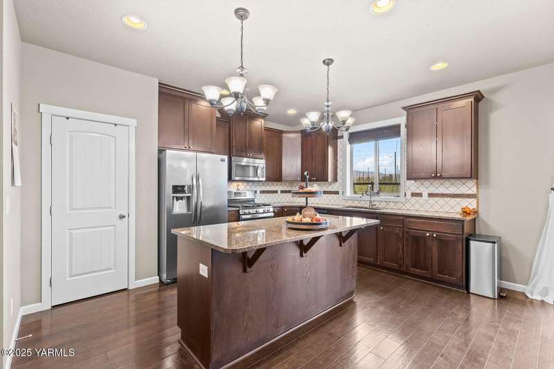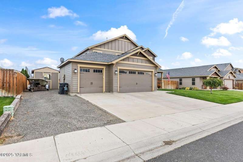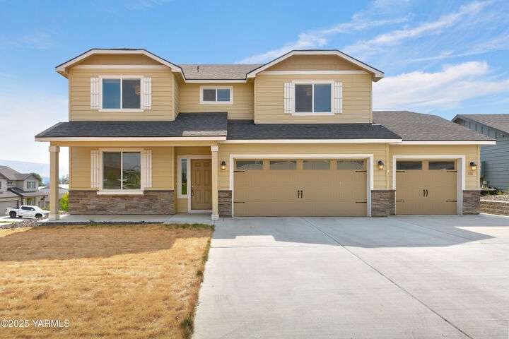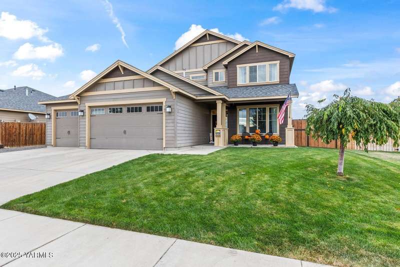 Welcome to 107 Mosaic street, a beautifully maintained 4 bedroom, two and a half bath home in a desirable Moxee neighborhood. Built in 2013, this home is loaded with upgrades including hardwood floors, 9-foot ceilings, granite counters, upgraded lighting, hardware and fixtures throughout. The master suite has a spa-like bathroom complete with jetted tub, tiled walk-in shower, double sinks and tile floor that leads into the walk-in closet. Large open concept downstairs. The living room is centered by a custom-made mantle with gas fireplace. Dining room, kitchen, entryway and downstairs bathroom all with hand scraped hardwood floors. Stainless steel appliances furnish the kitchen with tons of large cabinets and island. There is a large mud/ laundry room that comes off the kitchen leading to the spacious 3 car garage complete with a 220 plug-in and more custom-built shelving. There is RV parking with a 30 amp plug in. Underground sprinklers and an automated drip/watering system make it a pleasure to have flowers, bushes and trees without having the worry of watering by hand. A custom-built, fully fenced yard with two gates, borders a lush green hop field. The perfect place to enjoy a quiet peaceful evening.