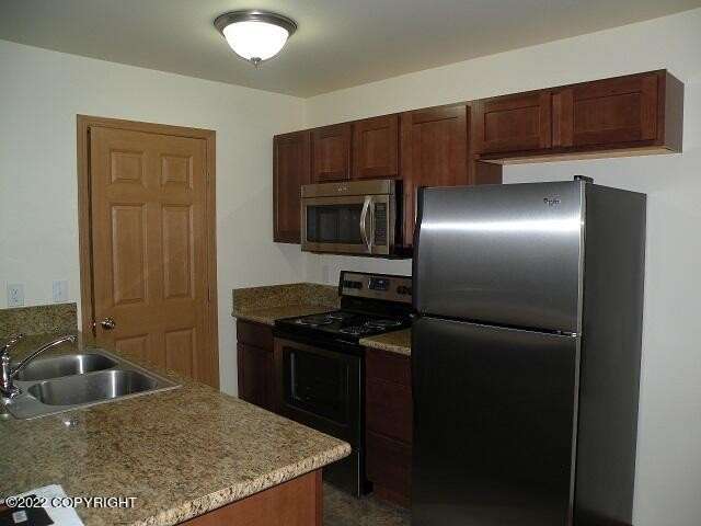 This is a very nice, one bedroom, 1 bathroom upstairs apartment in Wasilla. Electric range, granite countertops, pantry, washer and dryer in each unit. No smoking. Hot water on demand/in floor heat in each unit. Pet on approval with additional $100 a month in rent per pet and $500 pet deposit. Cat or dog ok. Tenant pays gas & electric. Year lease. It is a requirement that all our tenants have "Renters Insurance" with any company you choose. Proof of insurance is due at move-in. Check with your auto insurance company, it usually runs $8-$15 a month. Equal Housing Opportunity.