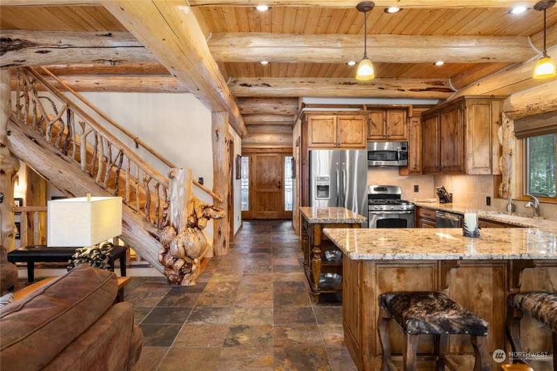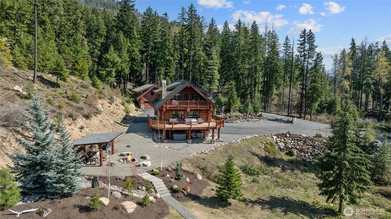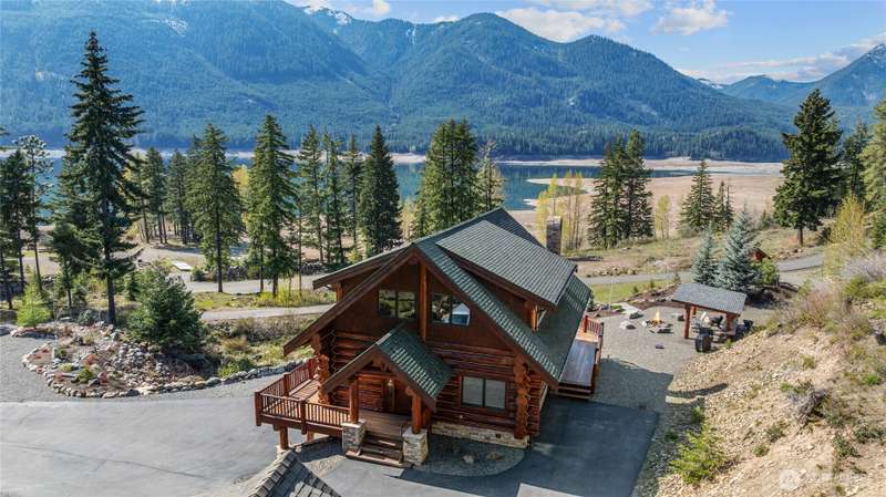 Perched above Lake Cle Elum, this turn key, meticulously maintained, custom built log home on 3 acres is a must see. Main floor offers eat-in kitchen, great room with rock fireplace, vaulted ceilings, and massive windows that overlook the lake and towards the mountains, as well as a guest room and 3/4 bath. Upper level primary bedroom with attached full bath, guest bedroom, powder room, and open loft w/deck access. Lower level boasts rec room, hot tub access and attached heated garage. Spacious deck, landscaped yard and firepit with covered space provides the perfect spot for entertaining or just relaxing and taking in the views. Additional detached garage with additional living space. Enjoy 4 seasons of fun in this recreational paradise!
